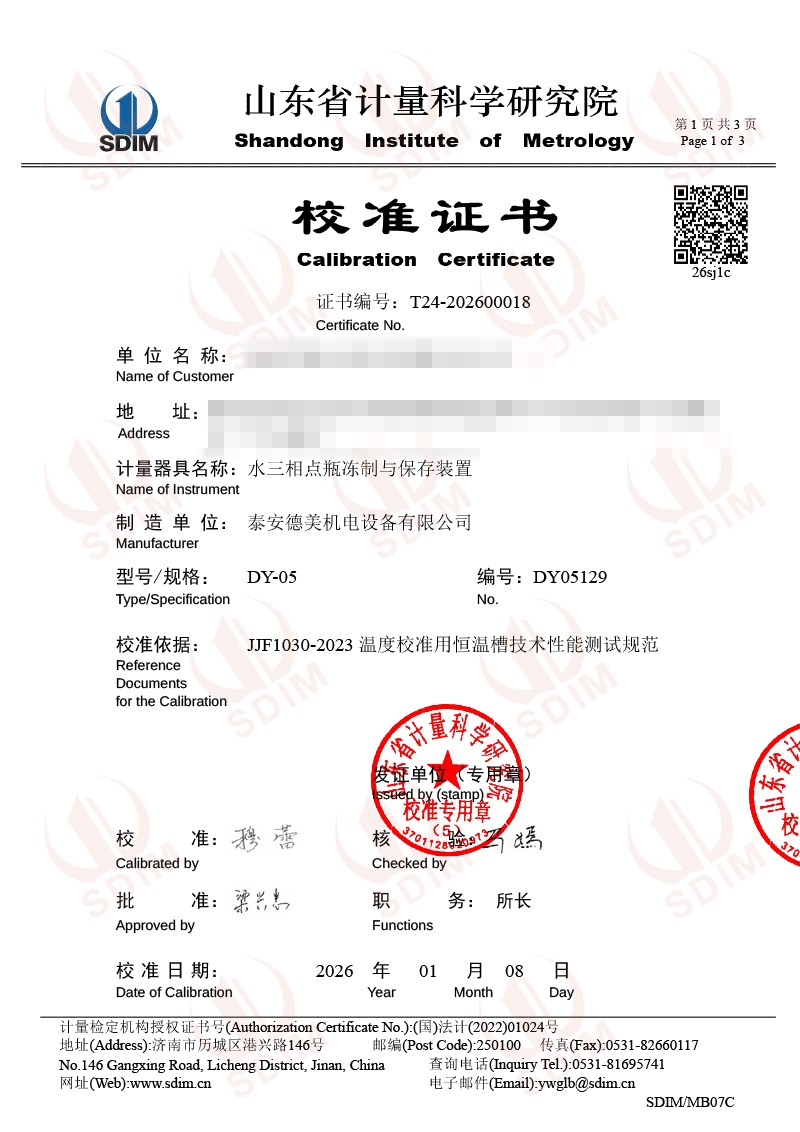 水三相點瓶凍制與保存裝置校準(zhǔn)證書 2026-1-13 本文被閱讀 2102 次