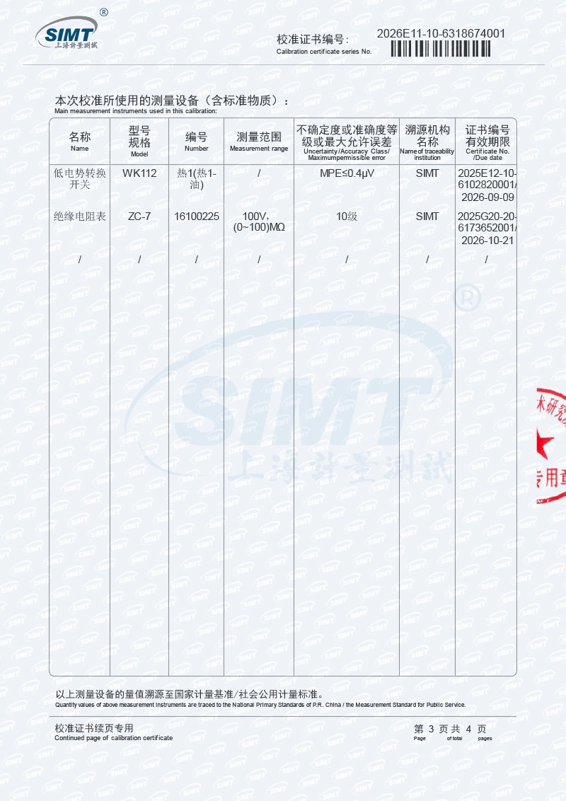 | 上一條:高精度數(shù)字溫度計(jì)-校準(zhǔn)證書(shū) | 下一條:廉金屬熱電偶檢定爐-校準(zhǔn)證書(shū) |