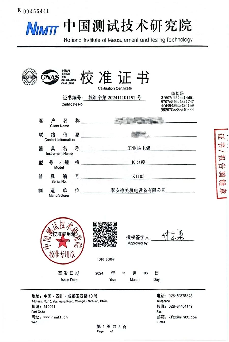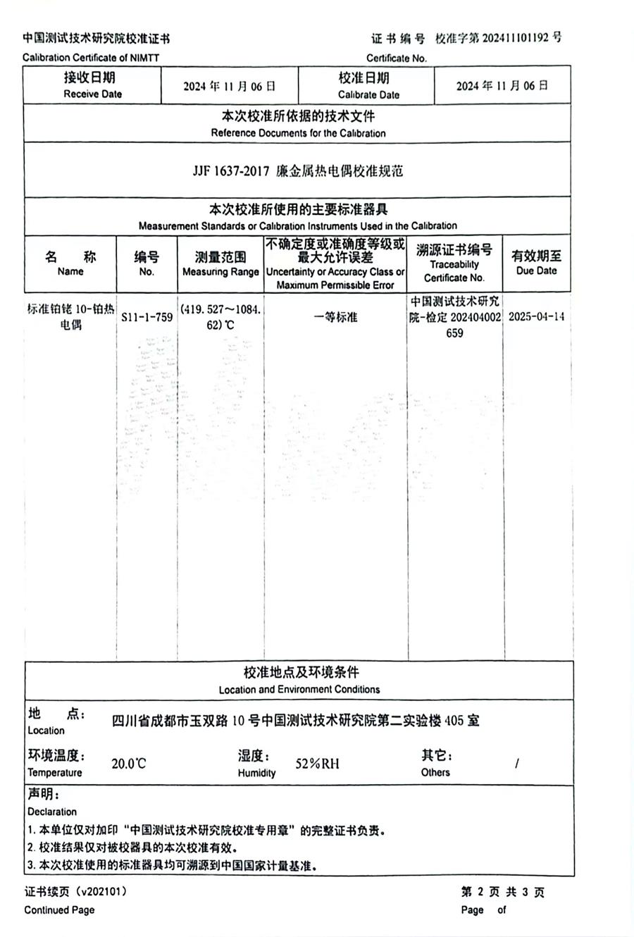 K分度熱電偶校準(zhǔn)證書 2024-11-9 本文被閱讀 8119 次
