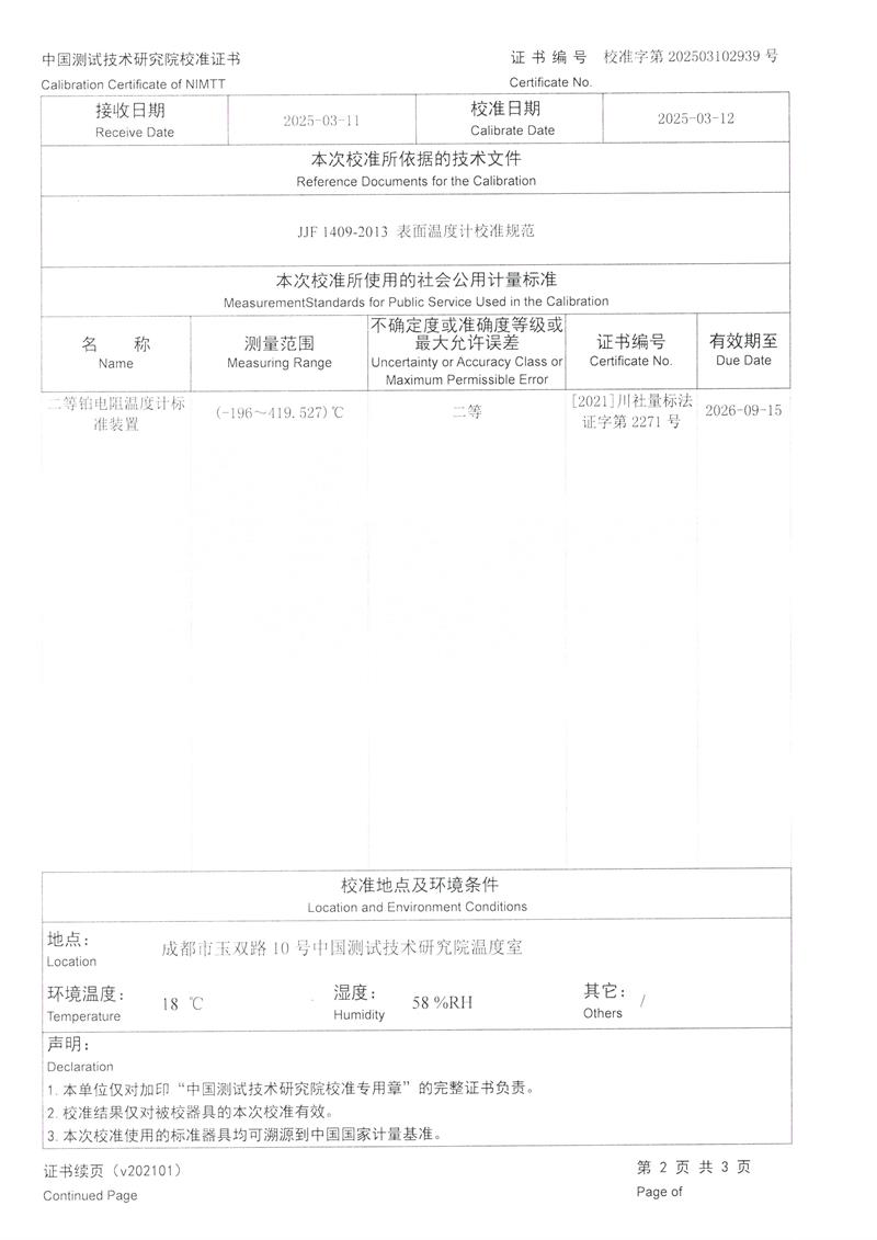 執(zhí)行標(biāo)準(zhǔn) | JJF 1409-2013 表面溫度計(jì)校準(zhǔn)規(guī)范 |