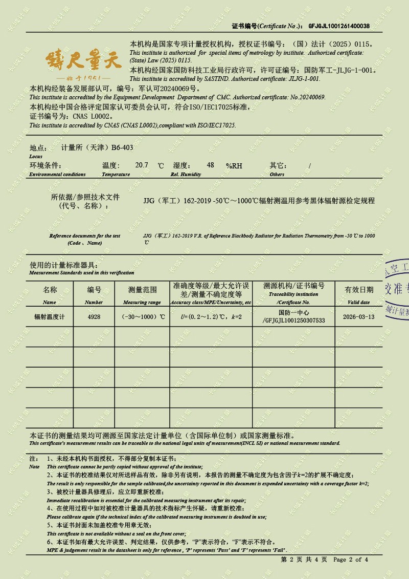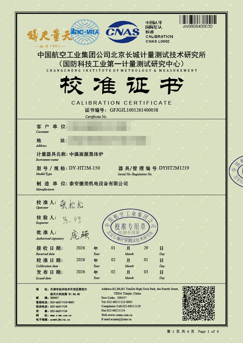 中溫面源黑體爐-校準(zhǔn)證書 2026-2-11 本文被閱讀 739 次