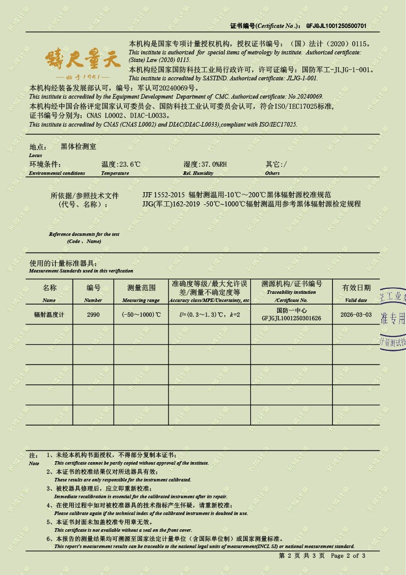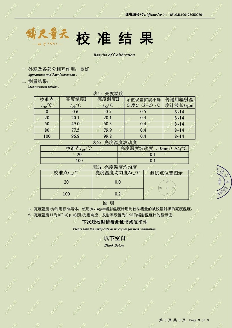 | 上一條:溫濕度巡檢儀測(cè)試系統(tǒng)校準(zhǔn)證書(shū) | 下一條:廉金屬熱電偶檢定爐-校準(zhǔn)證書(shū) |