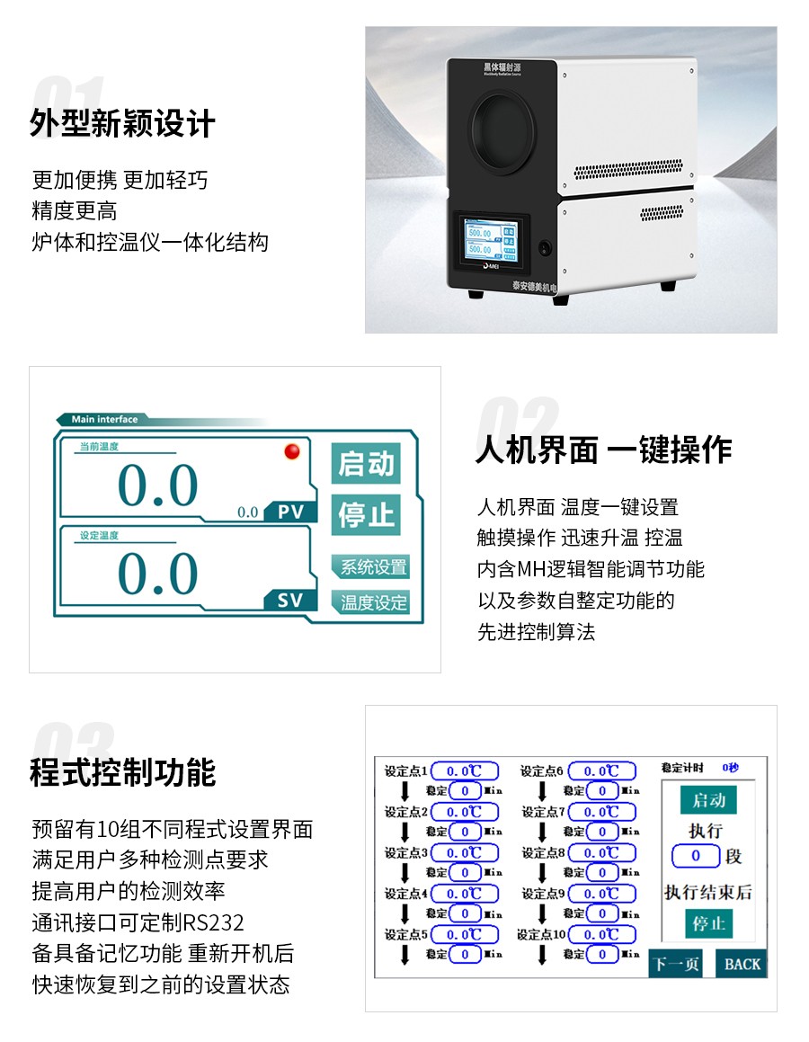 5)大面源等溫黑體輻射面,發(fā)射率可調(diào)功能(0.95-1 之間可調(diào),出廠默認(rèn)發(fā)射率 0.95)