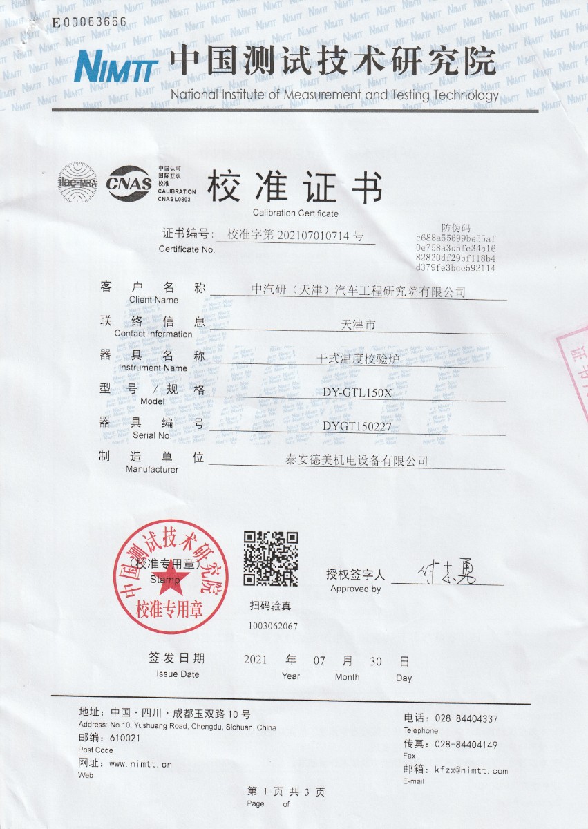 中汽研(天津)汽車工程研究院有限公司-干式溫度校驗爐 2021-8-6 本文被閱讀 22033 次