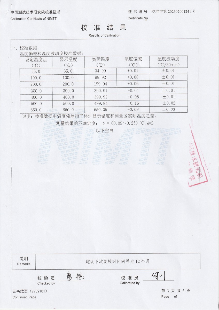 | 上一條:泰安德美機電設(shè)備有限公司 TRT4.82 精密輻射溫度計 校準證書 | 下一條:廉金屬熱電偶檢定爐-校準證書 |