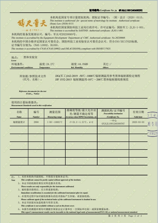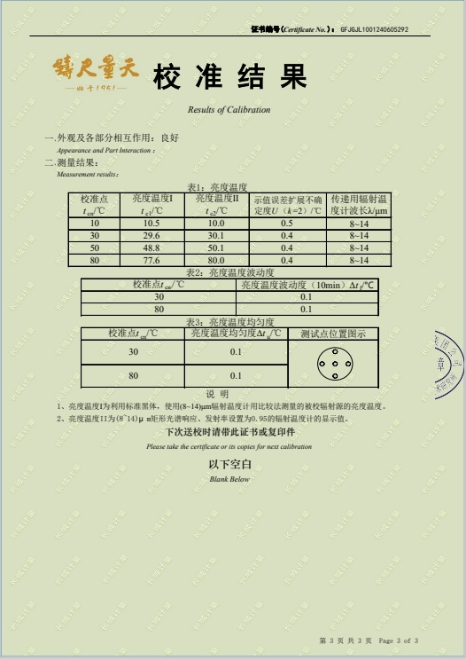 | 上一條:黑體輻射源(50-700℃)304所校準(zhǔn)證書 | 下一條:廉金屬熱電偶檢定爐-校準(zhǔn)證書 |