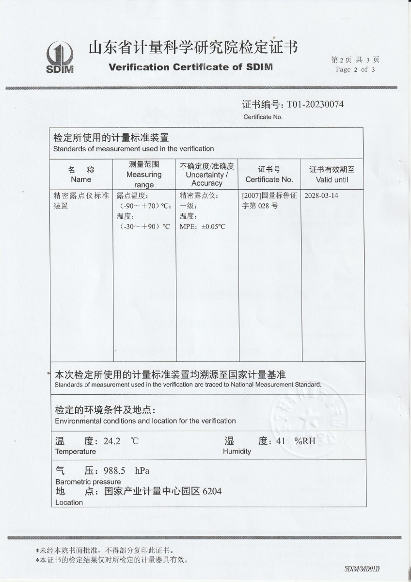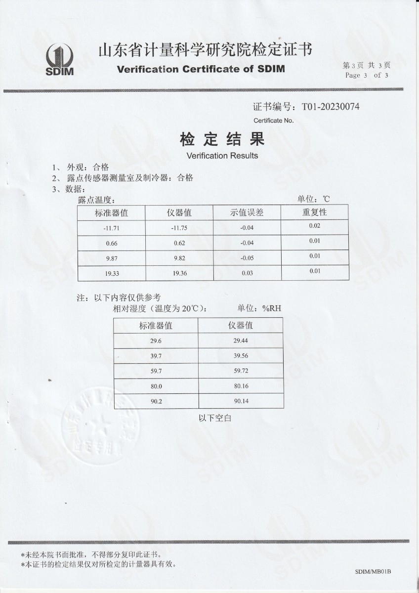 允公計量檢測有限責任公司-冷鏡露點儀檢定證書 2023-6-25 本文被閱讀 20228 次