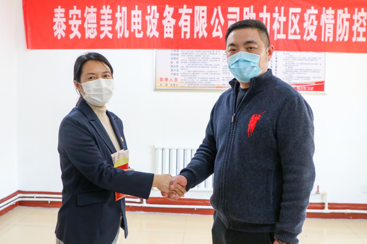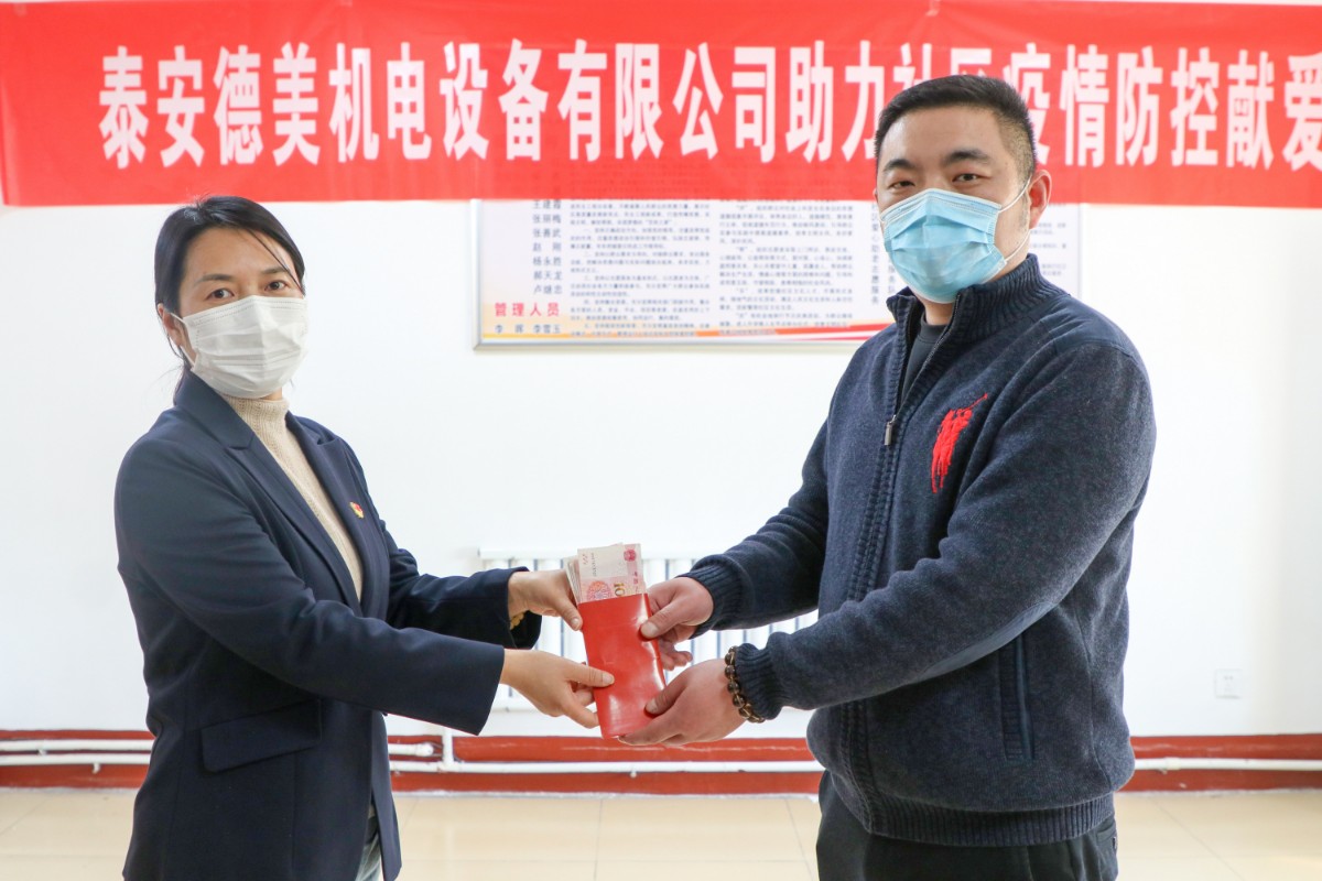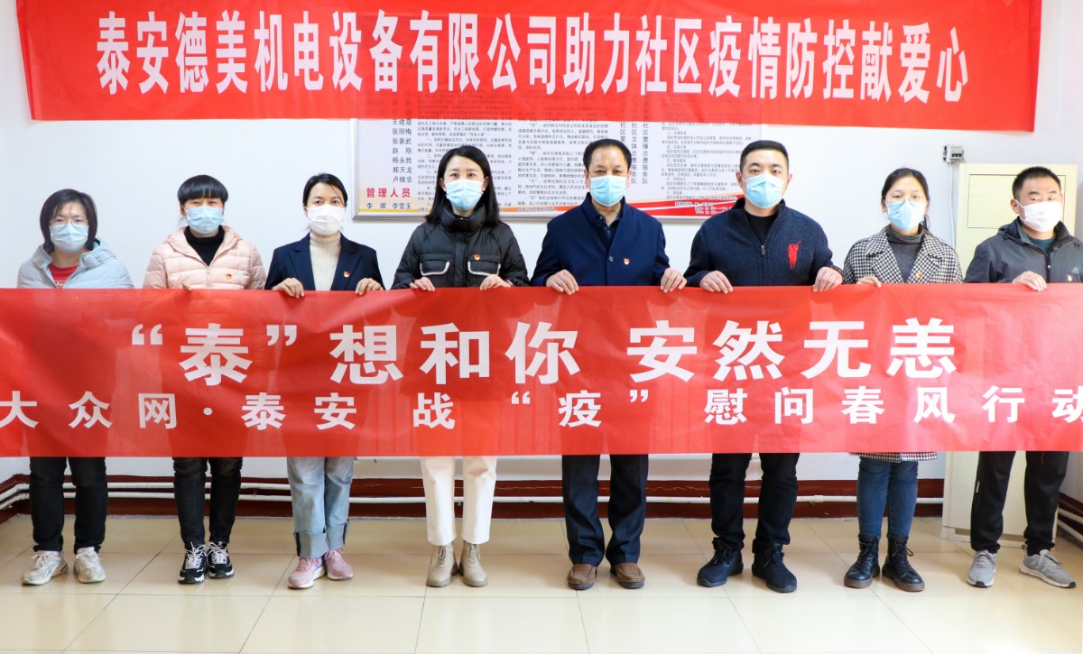 在疫情防控關(guān)鍵時(shí)期,泰安德美機(jī)電設(shè)備有限公司作為泰安國際商會副會長單位、泰山區(qū)政協(xié)委員獻(xiàn)出愛心,通過市貿(mào)促會、區(qū)貿(mào)促會牽線搭橋,為鐵路新村捐贈防疫物資,