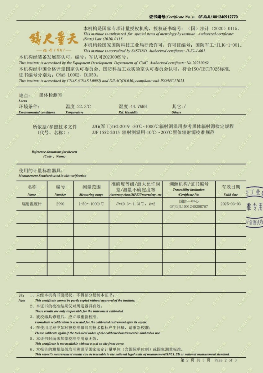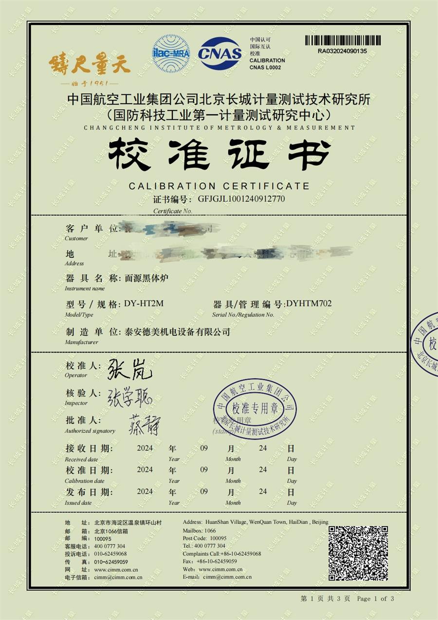 面源黑體爐(室溫+5-300℃)校準(zhǔn)證書 2024-10-17 本文被閱讀 6890 次