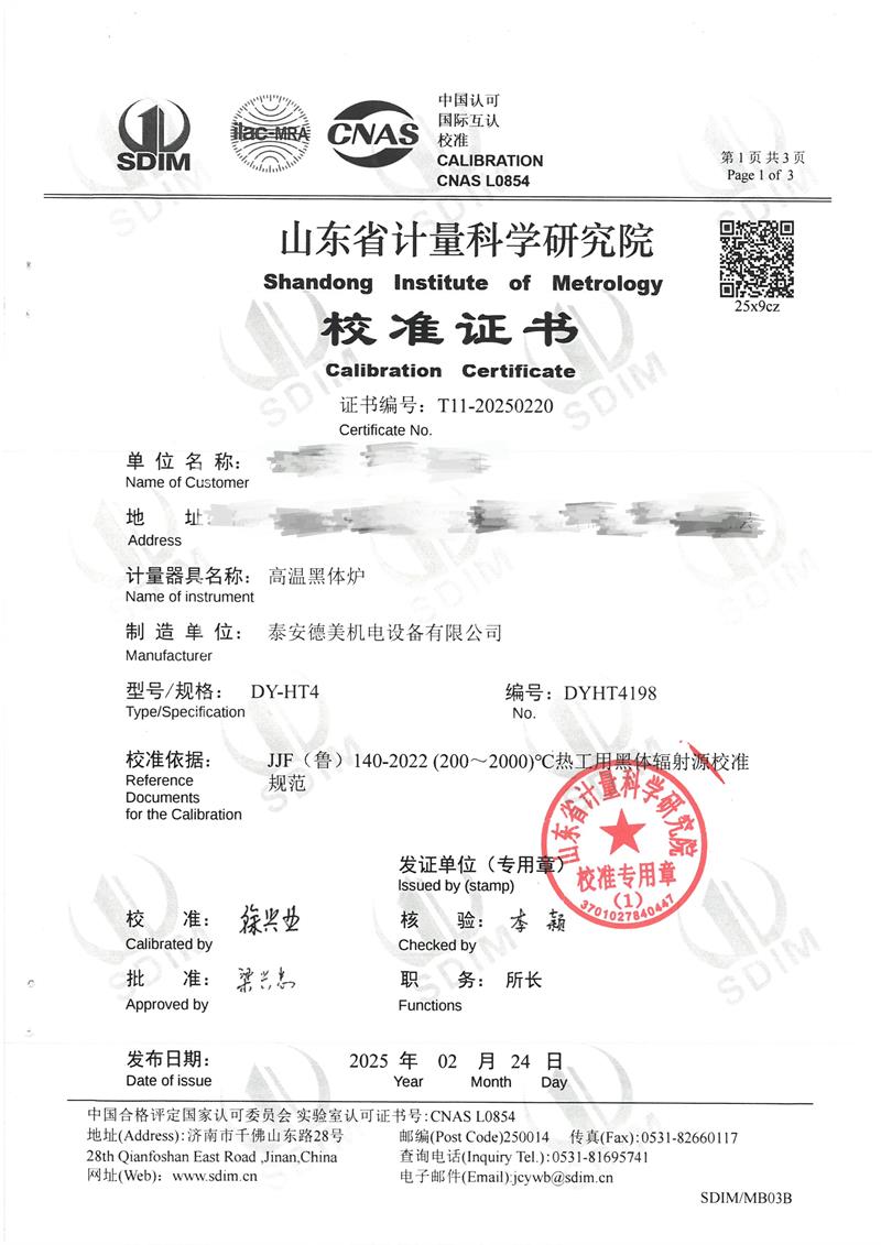 高溫黑體爐(800~1600℃)校準(zhǔn)證書 2025-2-26 本文被閱讀 5874 次
