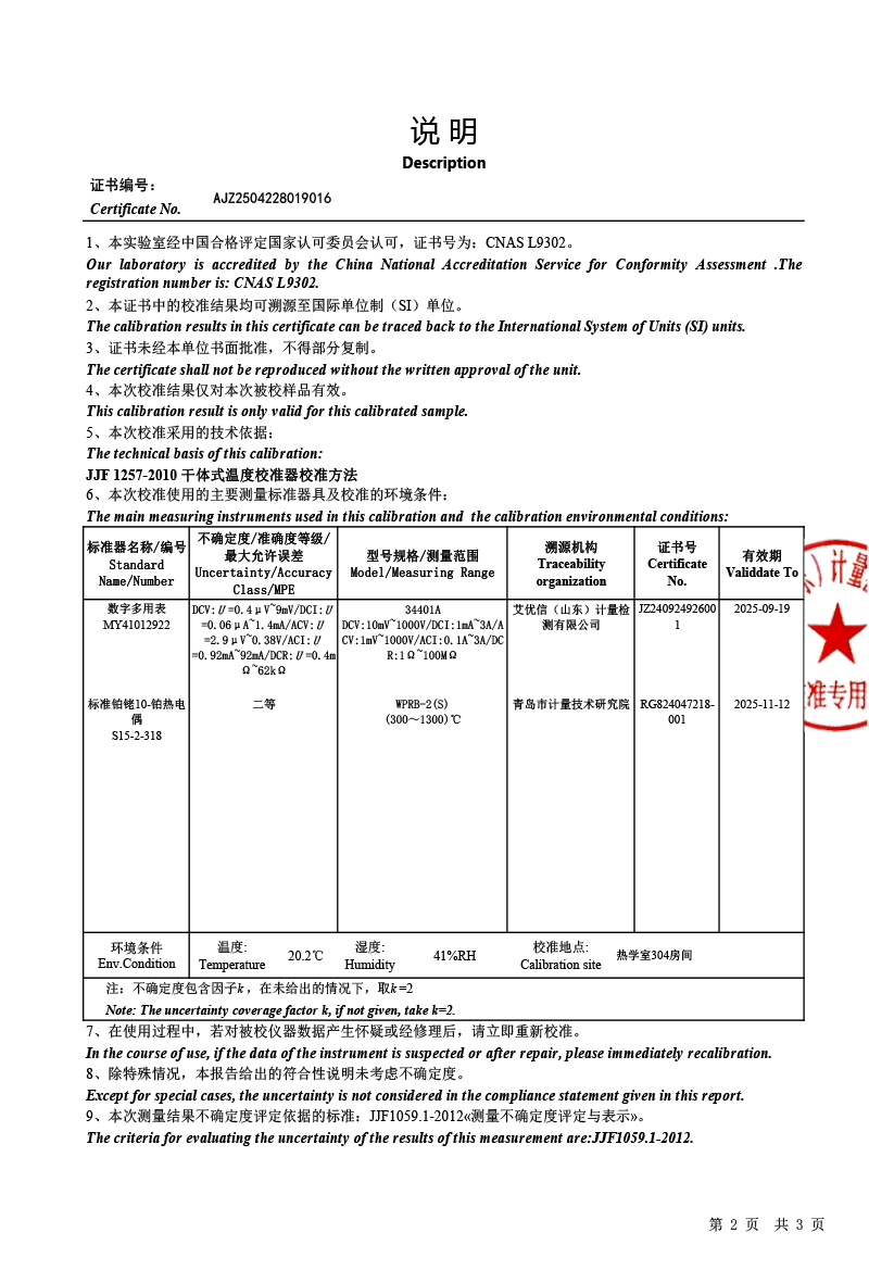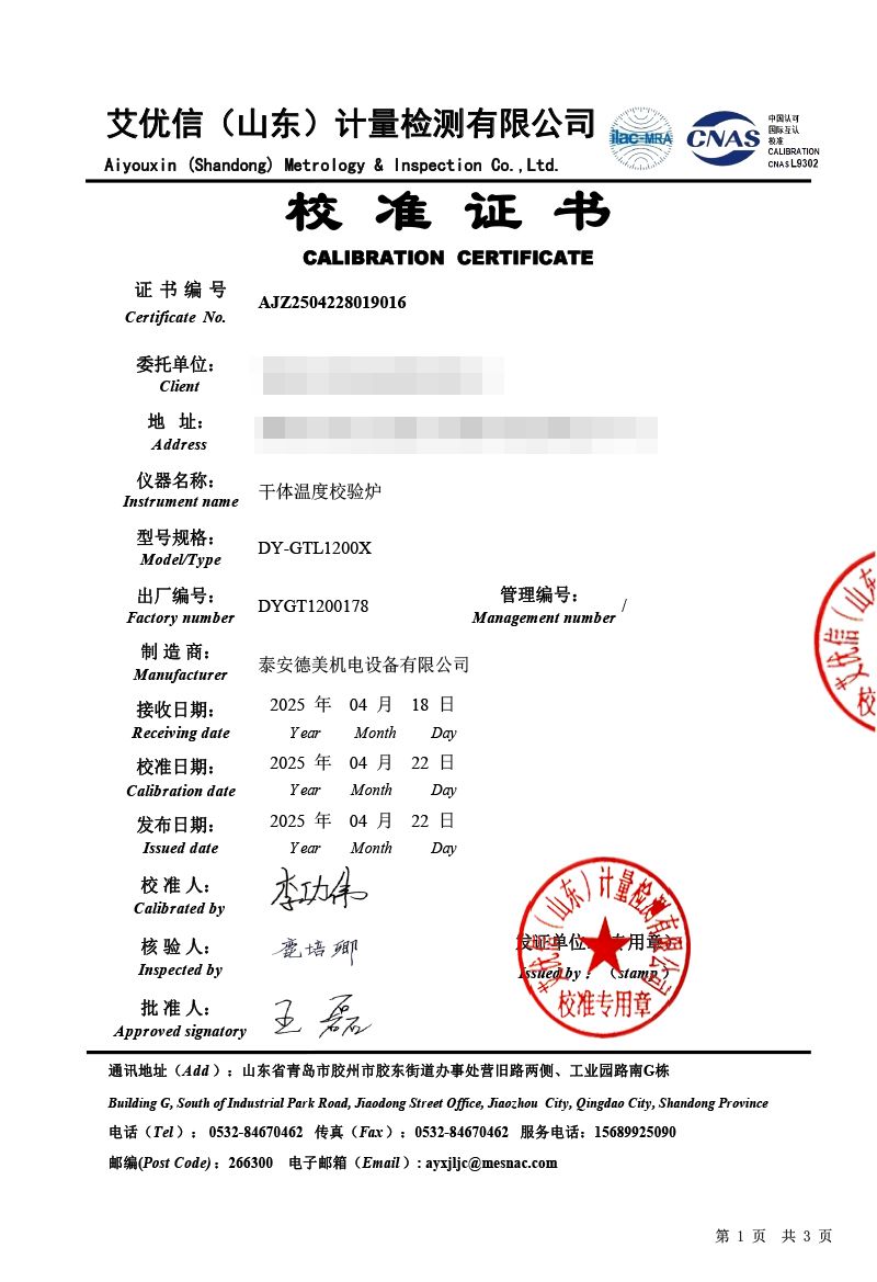| 上一條:高精度數(shù)字溫度計(jì)(-50-450℃)校準(zhǔn)證書 | 下一條:DY-HT2M-C高溫面源黑體爐(100mm) |