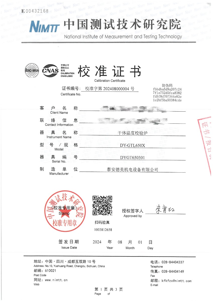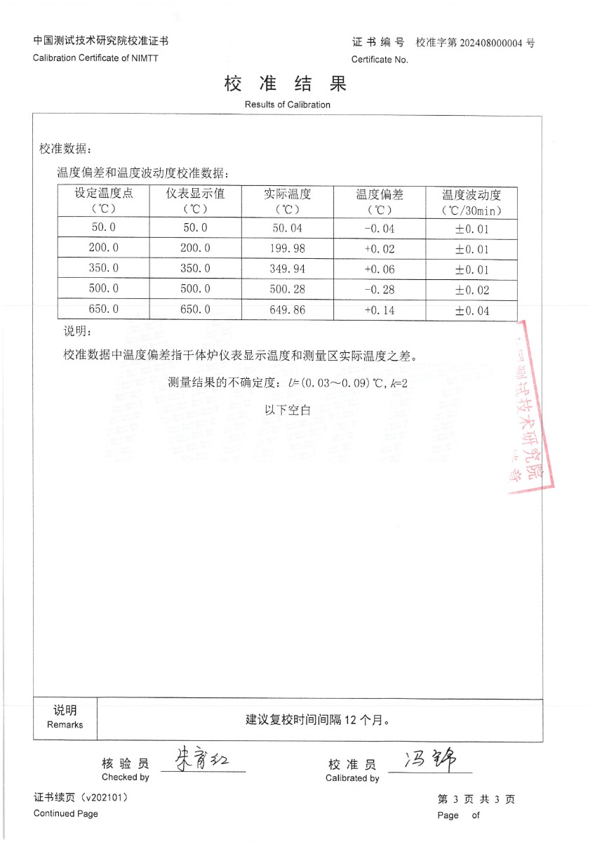 | 上一條:干體爐300(室溫+5℃~650℃)校準(zhǔn)證書 | 下一條:DY-HT2M-C高溫面源黑體爐(100mm) |