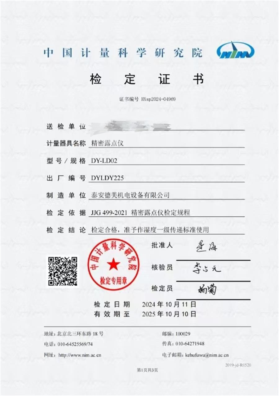 露點(diǎn)儀檢定證書 2024-11-6 本文被閱讀 7063 次
