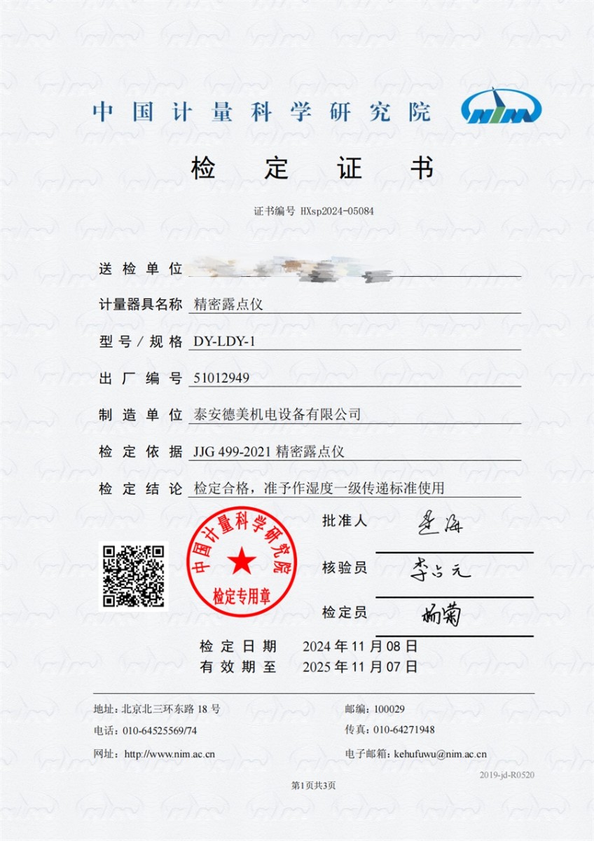 冷鏡式露點(diǎn)儀檢定證書 2024-11-21 本文被閱讀 7422 次
