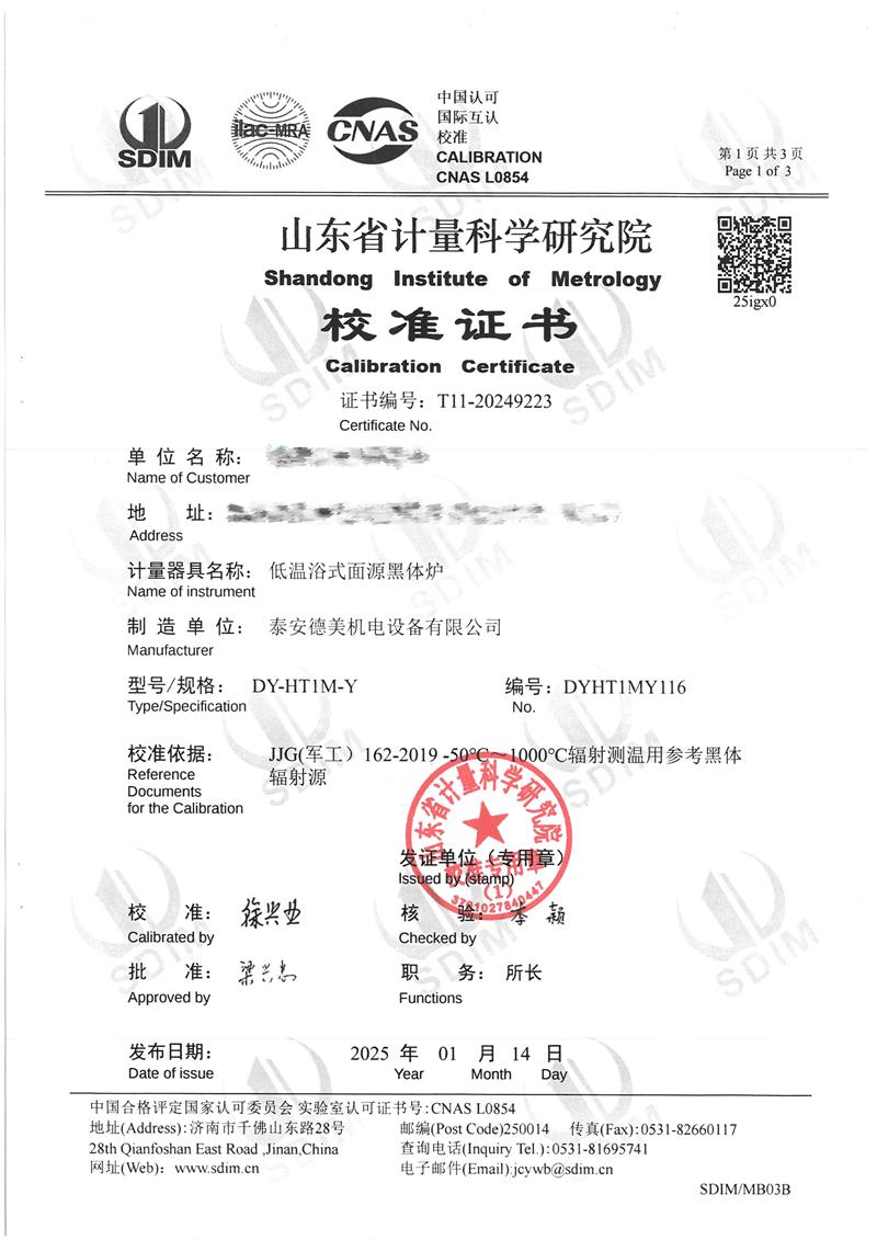 | 上一條:中溫干體爐(室溫+5~400℃)校準(zhǔn)證書(shū) | 下一條:DY-HT2M-C高溫面源黑體爐(100mm) |