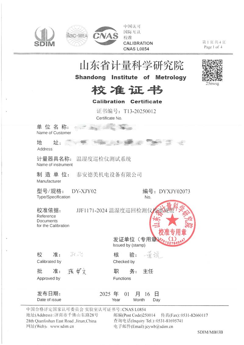 | 上一條:低溫浴式面源黑體爐(-50-80℃)校準(zhǔn)證書 | 下一條:DY-HT2M-C高溫面源黑體爐(100mm) |