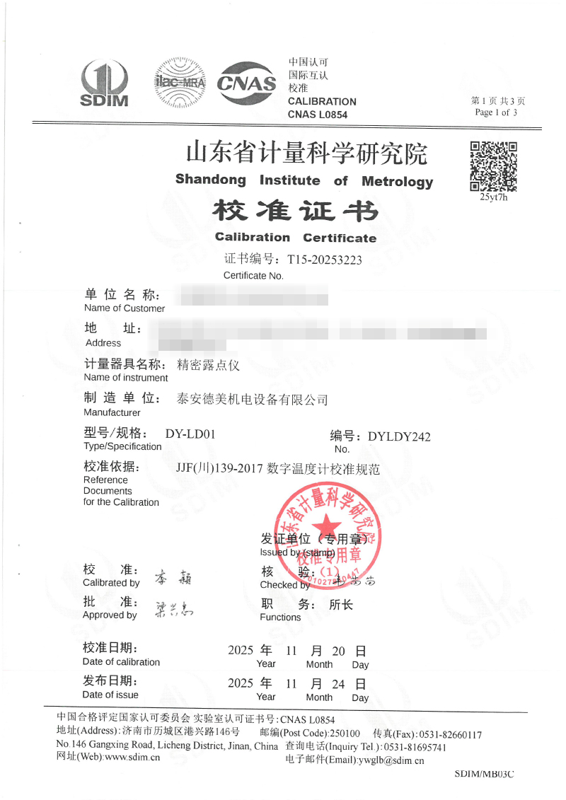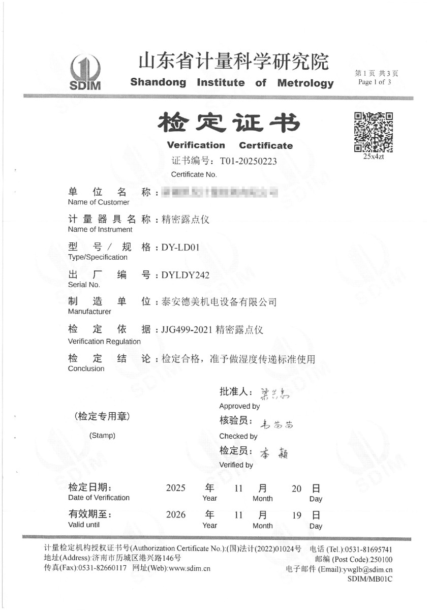 露點(diǎn)儀檢定、校準(zhǔn)證書 2025-12-4 本文被閱讀 1597 次