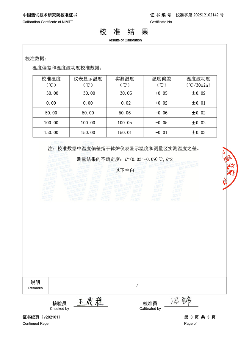 低溫干體爐校準證書 2025-12-11 本文被閱讀 1421 次