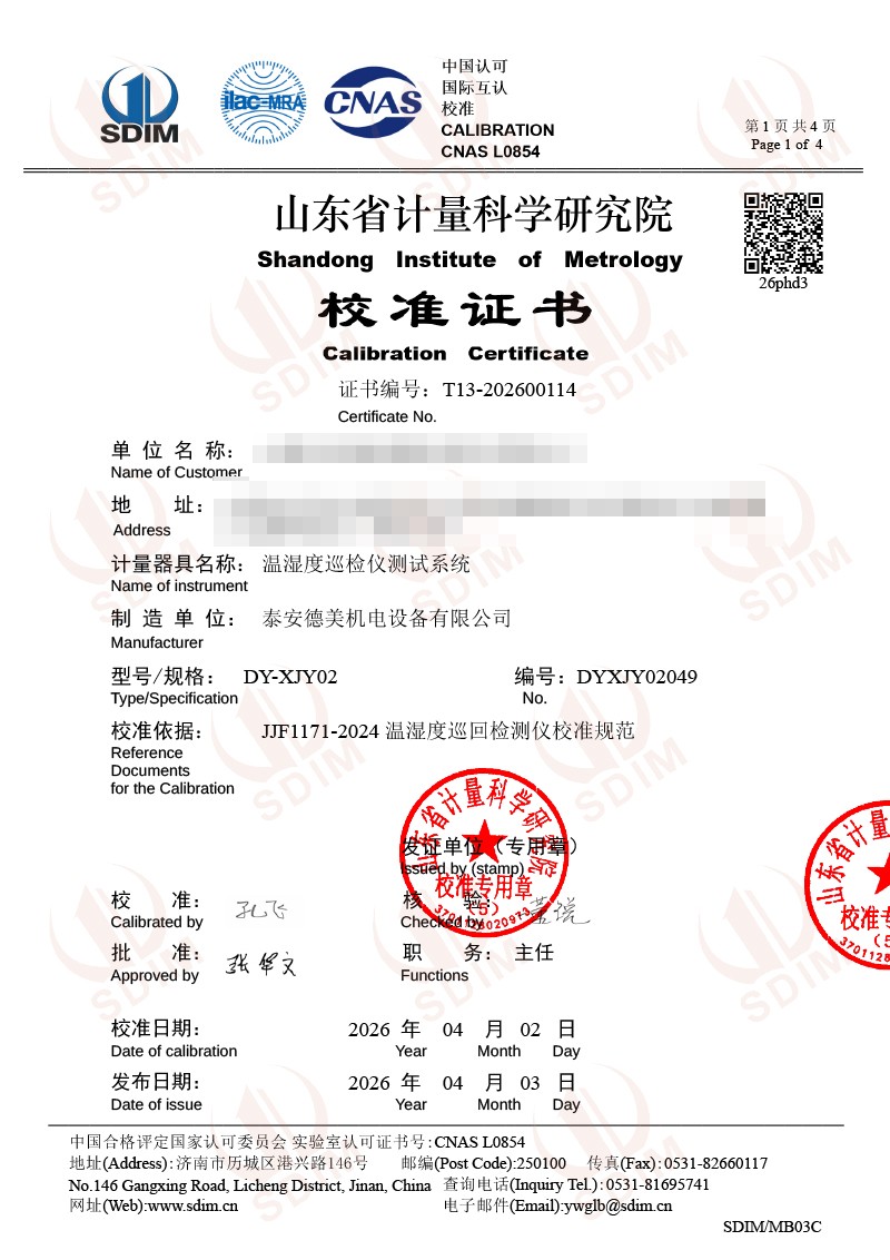 | 上一條:低溫智能干體爐(電測(cè)款)校準(zhǔn)證書(shū) | 下一條:高精度數(shù)字溫度計(jì)-校準(zhǔn)證書(shū) |
