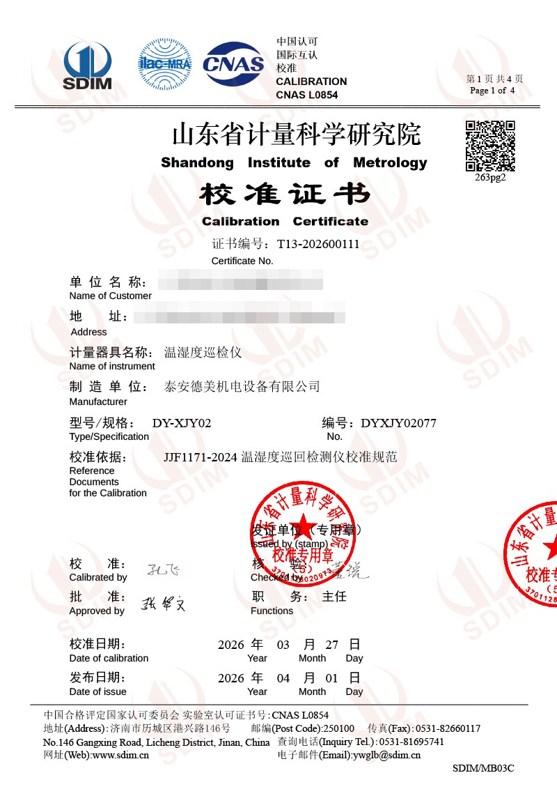 | 上一條:溫濕度巡檢儀測(cè)試系統(tǒng)-校準(zhǔn)證書 | 下一條:高精度數(shù)字溫度計(jì)-校準(zhǔn)證書 |