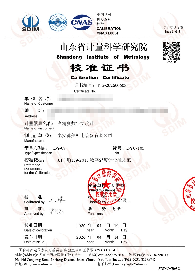 高精度數(shù)字溫度計(jì)-校準(zhǔn)證書(shū) 2026-4-14 本文被閱讀 121 次