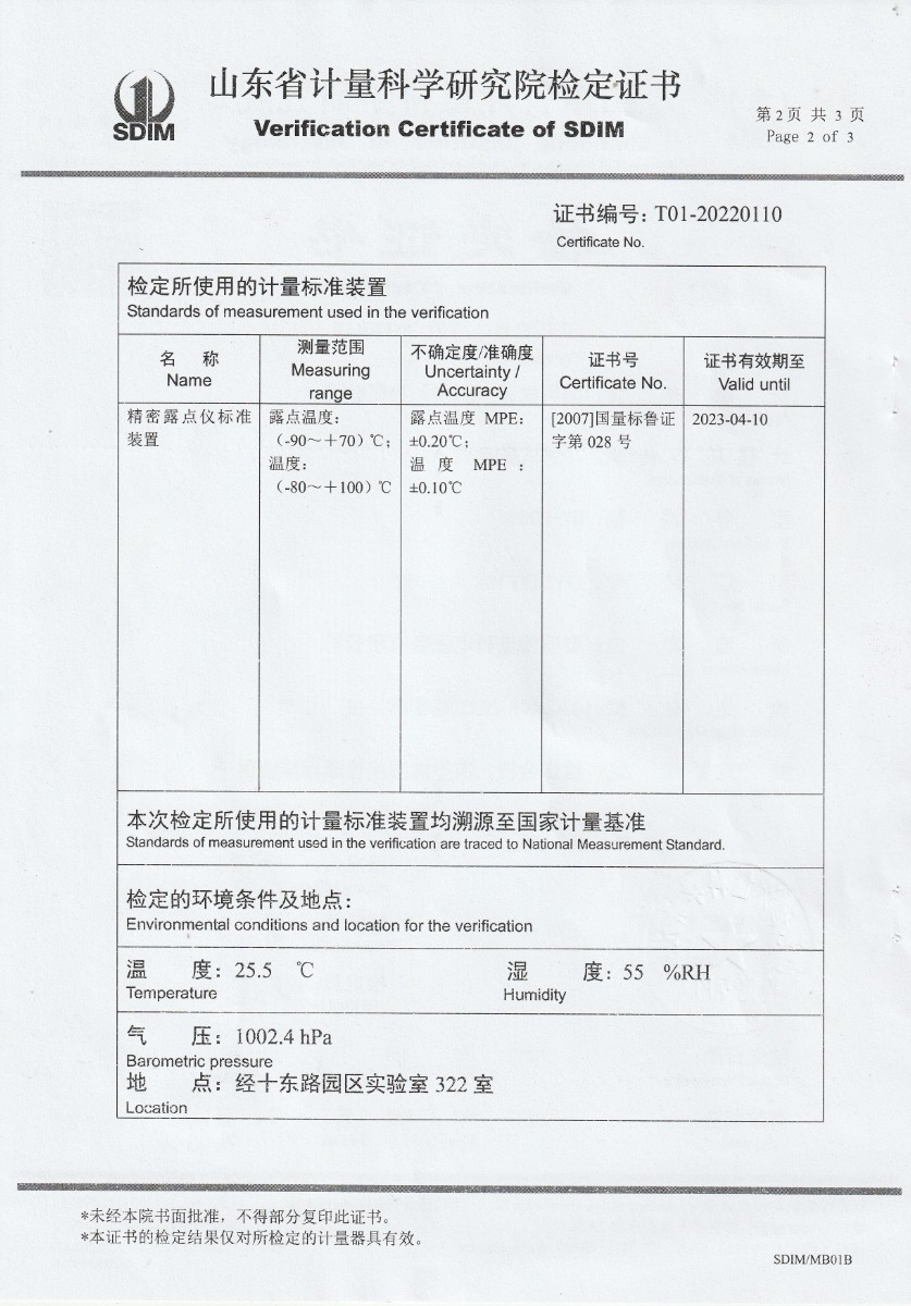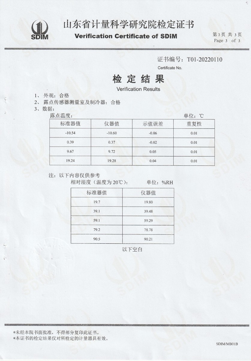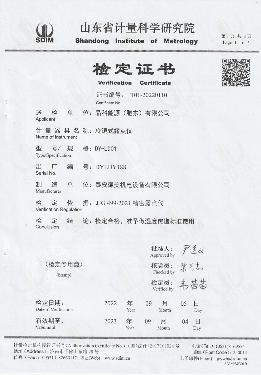 晶科能源(肥東)有限公司-冷鏡式露點儀檢定證書 2022-9-26 本文被閱讀 16832 次