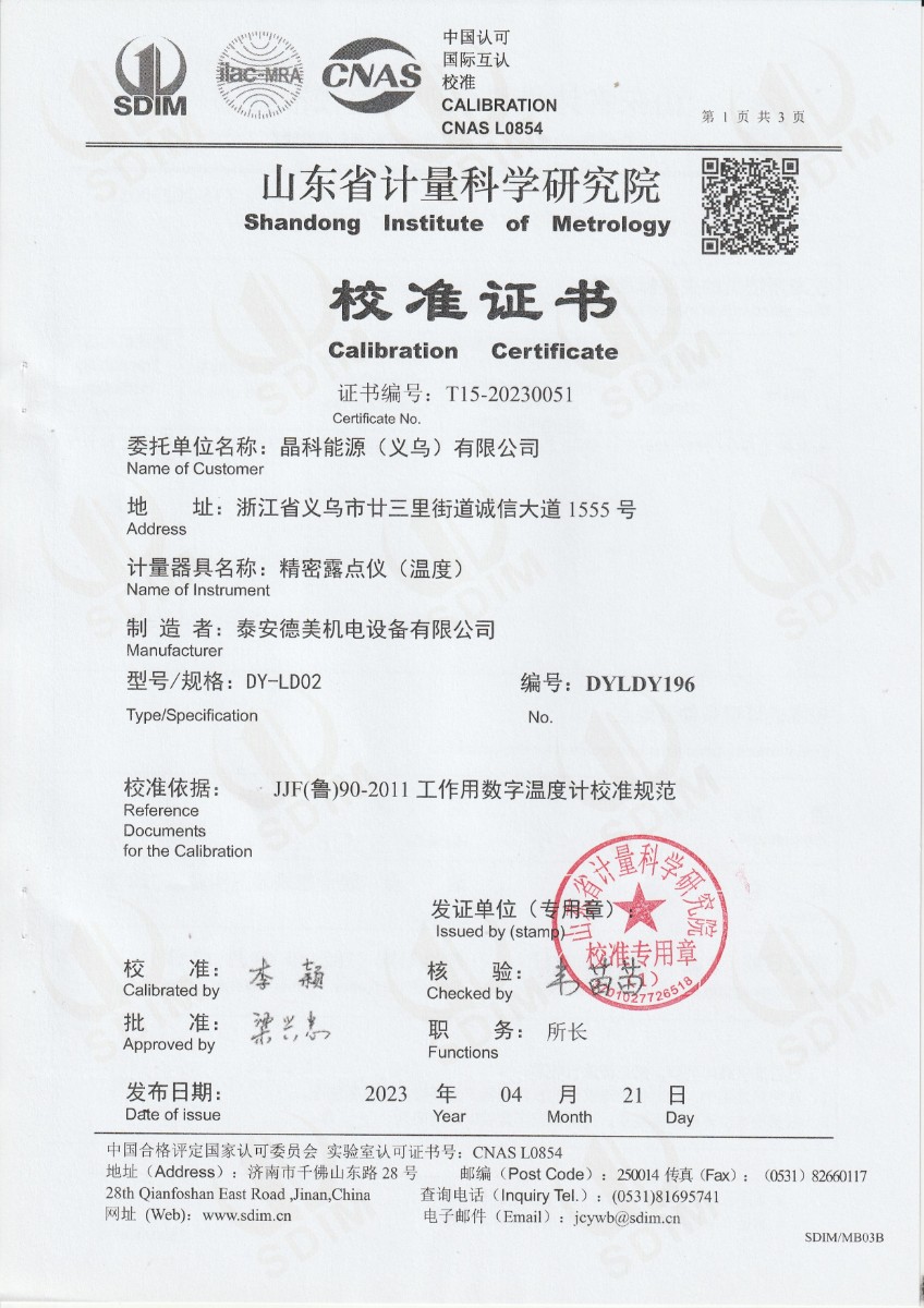 | 上一條:晶科能源(義烏)有限公司 精密露點(diǎn)儀 檢定證書 | 下一條:DY-HT2M-C高溫面源黑體爐(100mm) |
