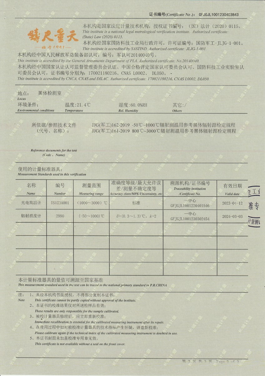 無錫英菲感知技術有限公司 高溫黑體 校準證書(1) 2023-5-4 本文被閱讀 11941 次