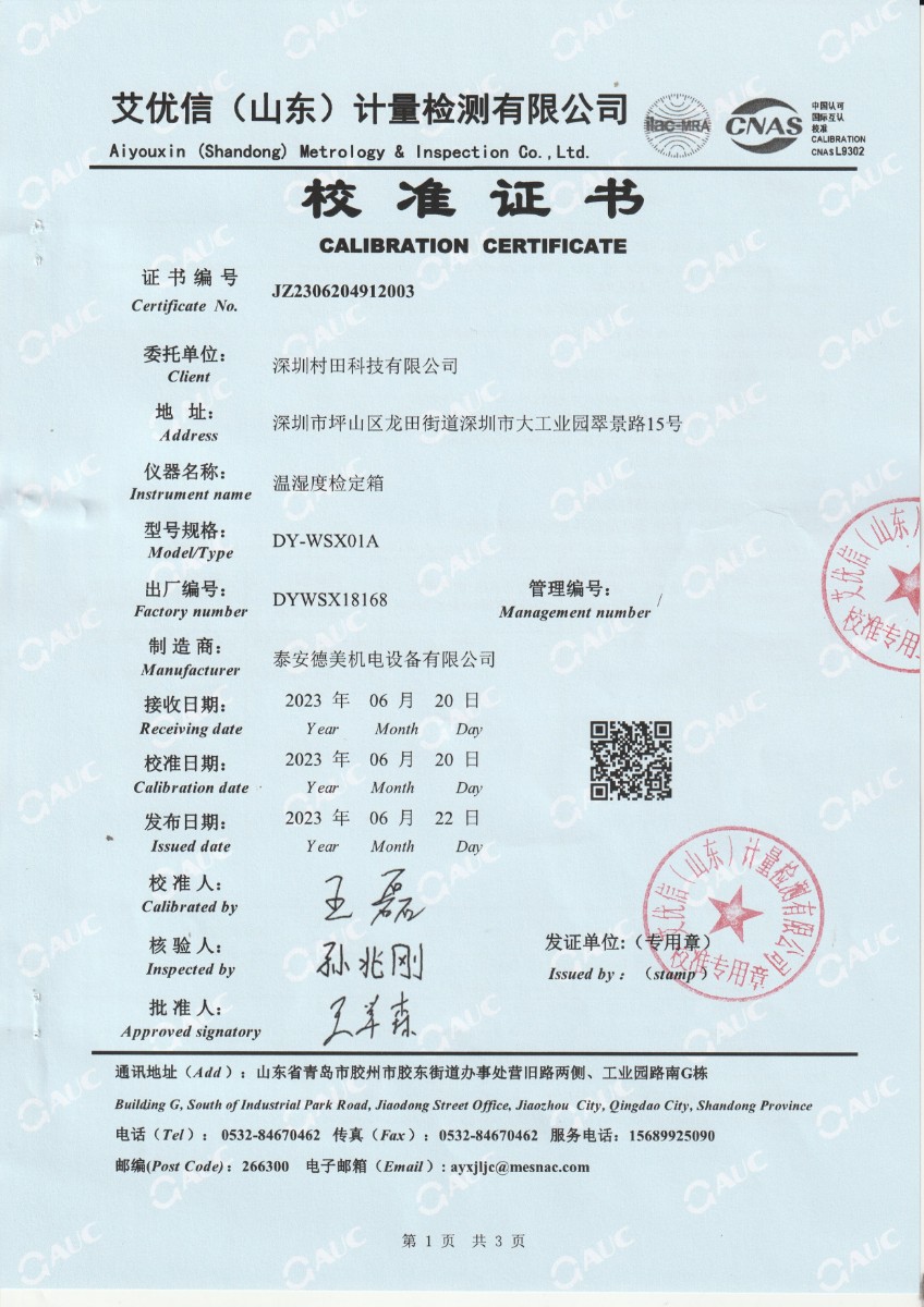 深圳村田科技有限公司-溫濕度檢定箱 2023-7-3 本文被閱讀 12587 次