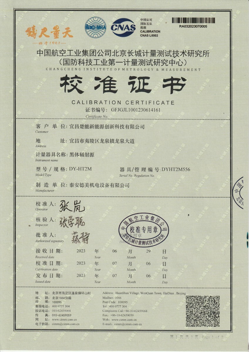 宜昌楚能新能源創(chuàng)新科技有限公司-黑體輻射源 2023-7-17 本文被閱讀 15832 次