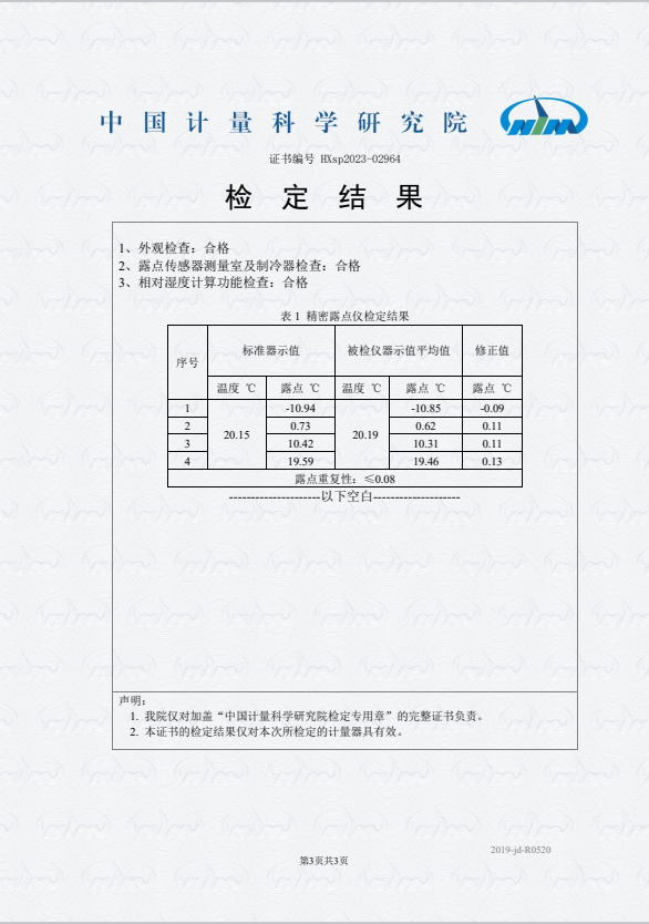 露點儀檢定證書 2023-11-9 本文被閱讀 10052 次