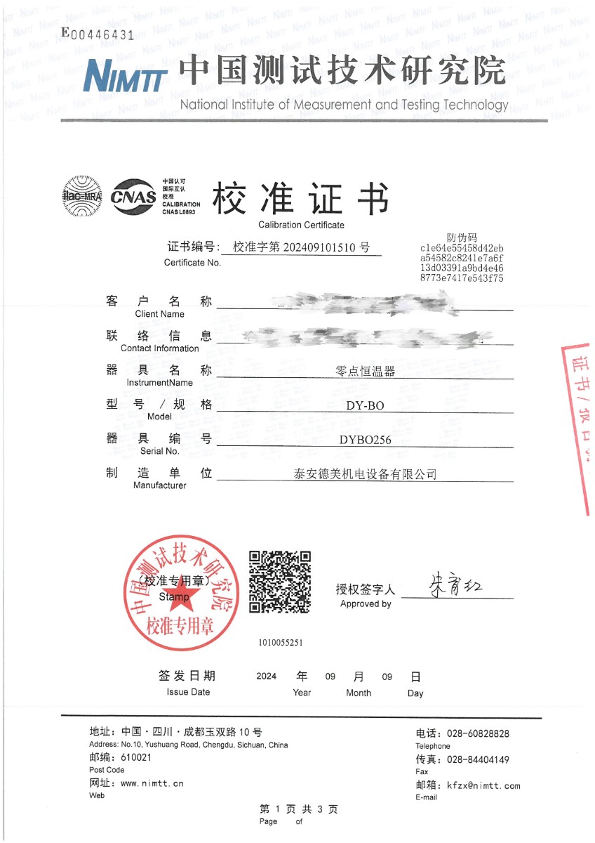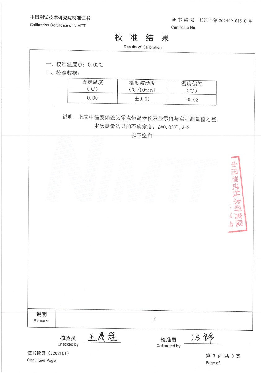 零點恒溫器校準(zhǔn)證書 2024-9-11 本文被閱讀 7197 次