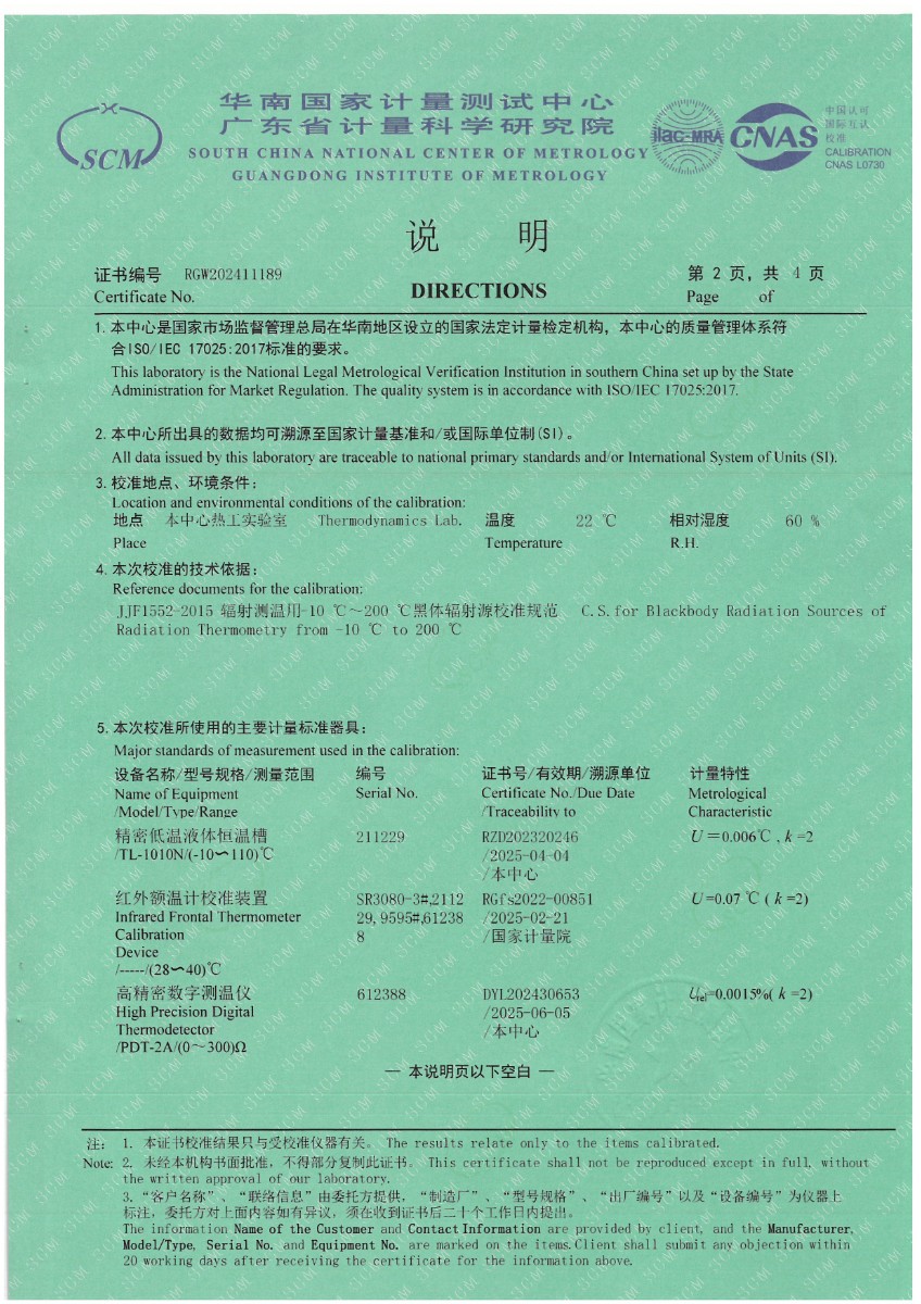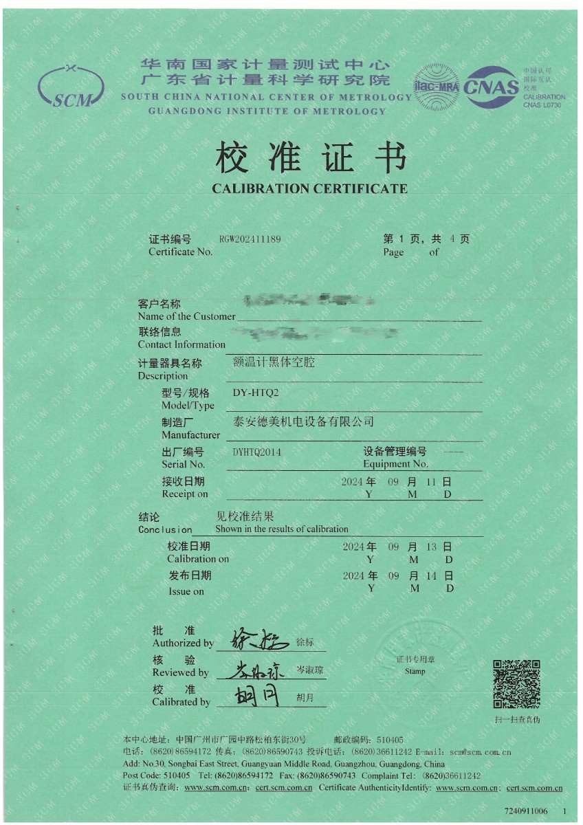 額溫計黑體空腔校準證書 2024-9-21 本文被閱讀 7527 次