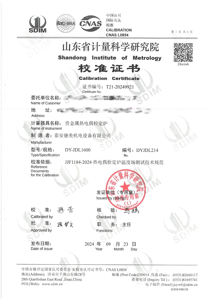 | 上一條:貴金屬熱電偶檢定爐(300~1000℃)校準(zhǔn)證書(shū) | 下一條:DY-GTL-XC智能干體爐/干體溫度校驗(yàn)爐(電測(cè)) |