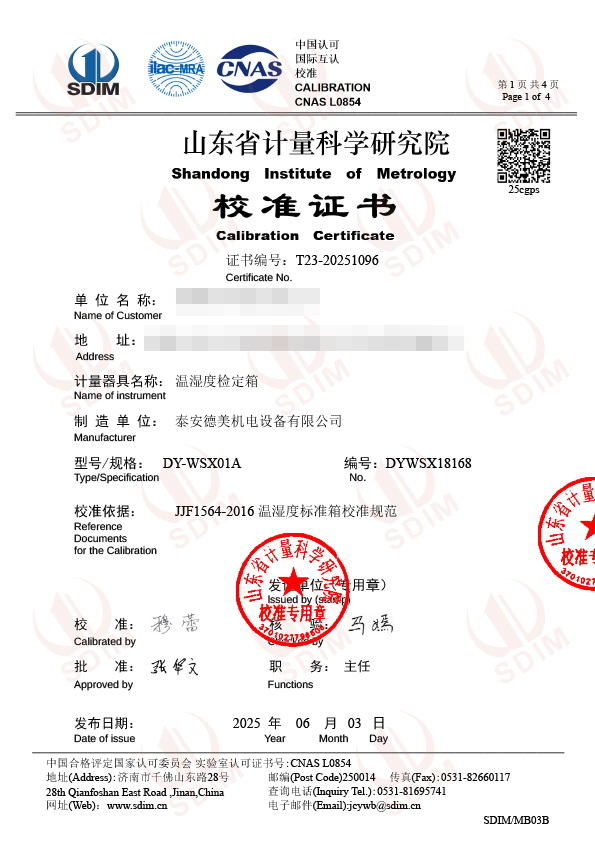 溫濕度檢定箱(-20-65℃)校準(zhǔn)證書 2025-6-5 本文被閱讀 4363 次