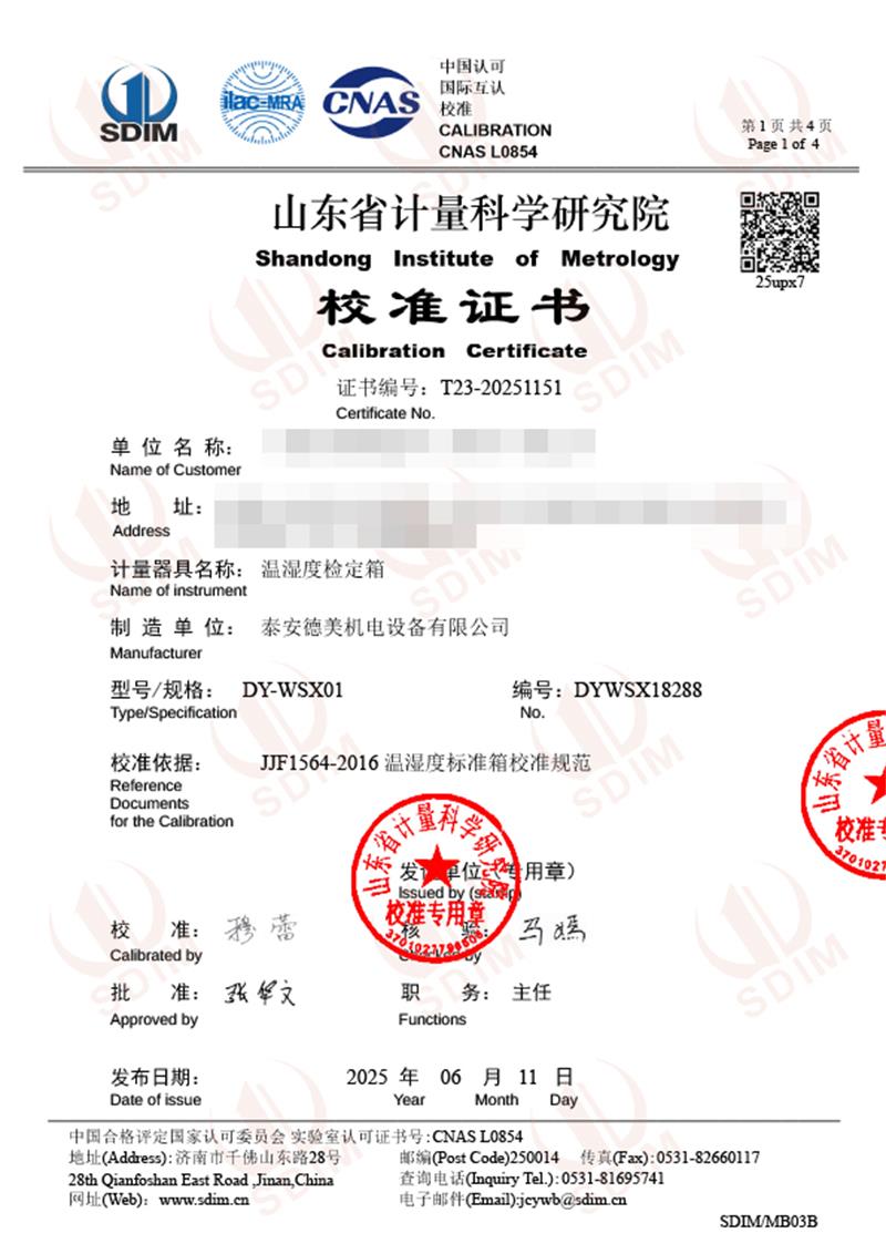 溫濕度檢定箱(-5-65℃)校準(zhǔn)證書 2025-6-13 本文被閱讀 4005 次