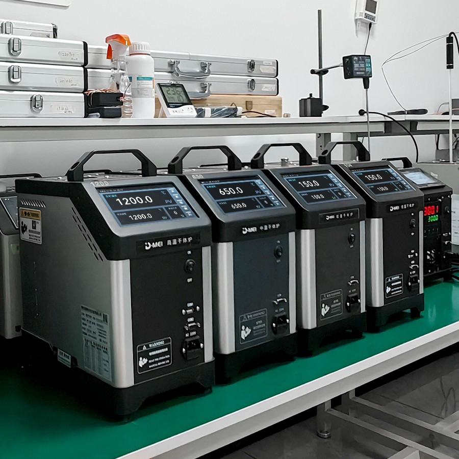干體爐能夠提供一個穩(wěn) 定的、均勻的、準(zhǔn)確的溫度環(huán)境(溫場),提供了類似于恒溫槽(液浴槽)的性能,但是干體爐卻攜帶方便,不需要放置液體。干體爐到達預(yù)定溫度點并且溫度穩(wěn) 定的時間比恒溫槽快5到10倍,這樣可以大大節(jié)省校準(zhǔn)人員的時間,提高溫度檢定速度。干體爐的便攜性使其能夠到現(xiàn)場進行校準(zhǔn)工作,從而解決了恒溫槽在運輸移動上的困難。 通過干體爐可以方便地校準(zhǔn)溫度傳感器、水銀溫度計、膨脹式溫度計、熱電偶、熱電阻、等溫度傳感器。
