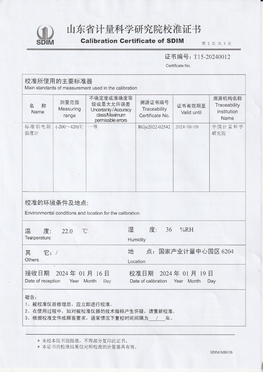 冷鏡式露點儀校準證書 2024-1-31 本文被閱讀 10193 次