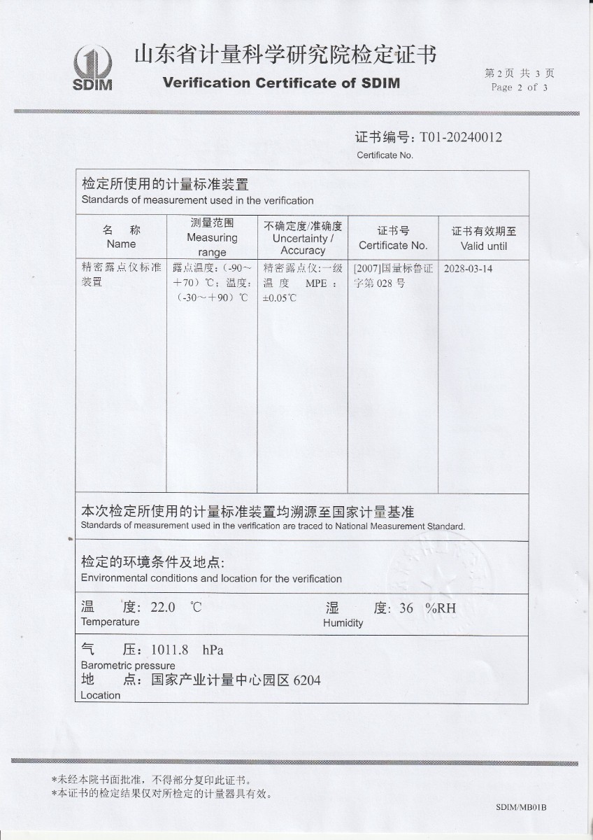 冷鏡式露點儀檢定證書 2024-1-31 本文被閱讀 9839 次
