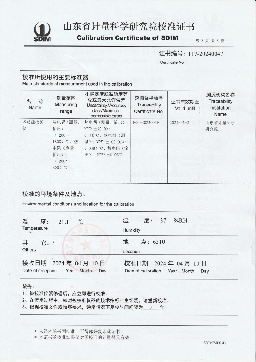 溫度校驗儀校準(zhǔn)證書 2024-4-12 本文被閱讀 7078 次