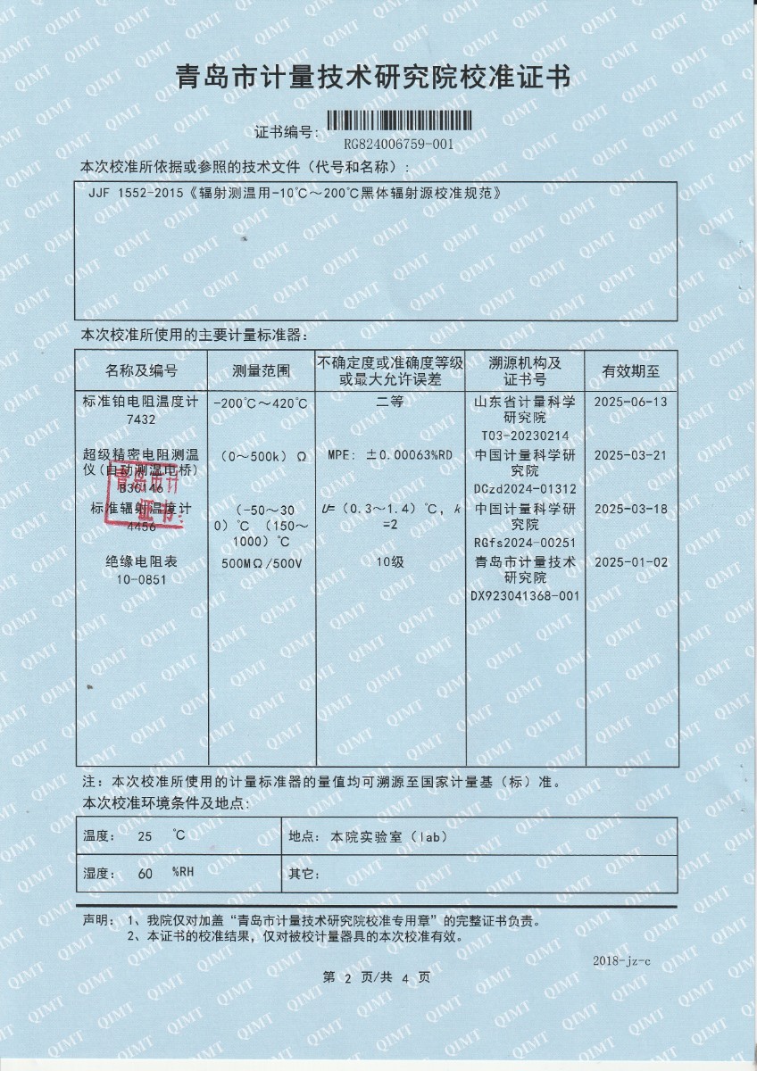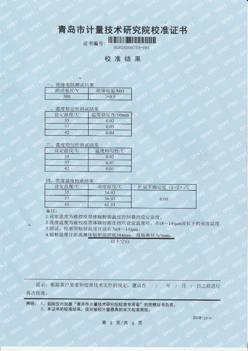 額溫計(jì)黑體空腔校準(zhǔn)證書 2024-4-16 本文被閱讀 7776 次
