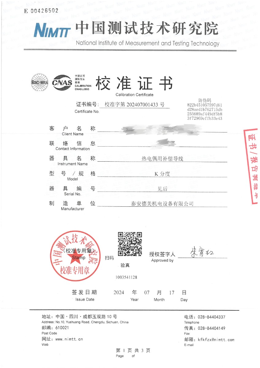 熱電偶用補(bǔ)償導(dǎo)線K分度校準(zhǔn)證書 2024-7-19 本文被閱讀 7437 次