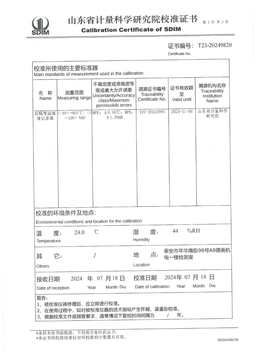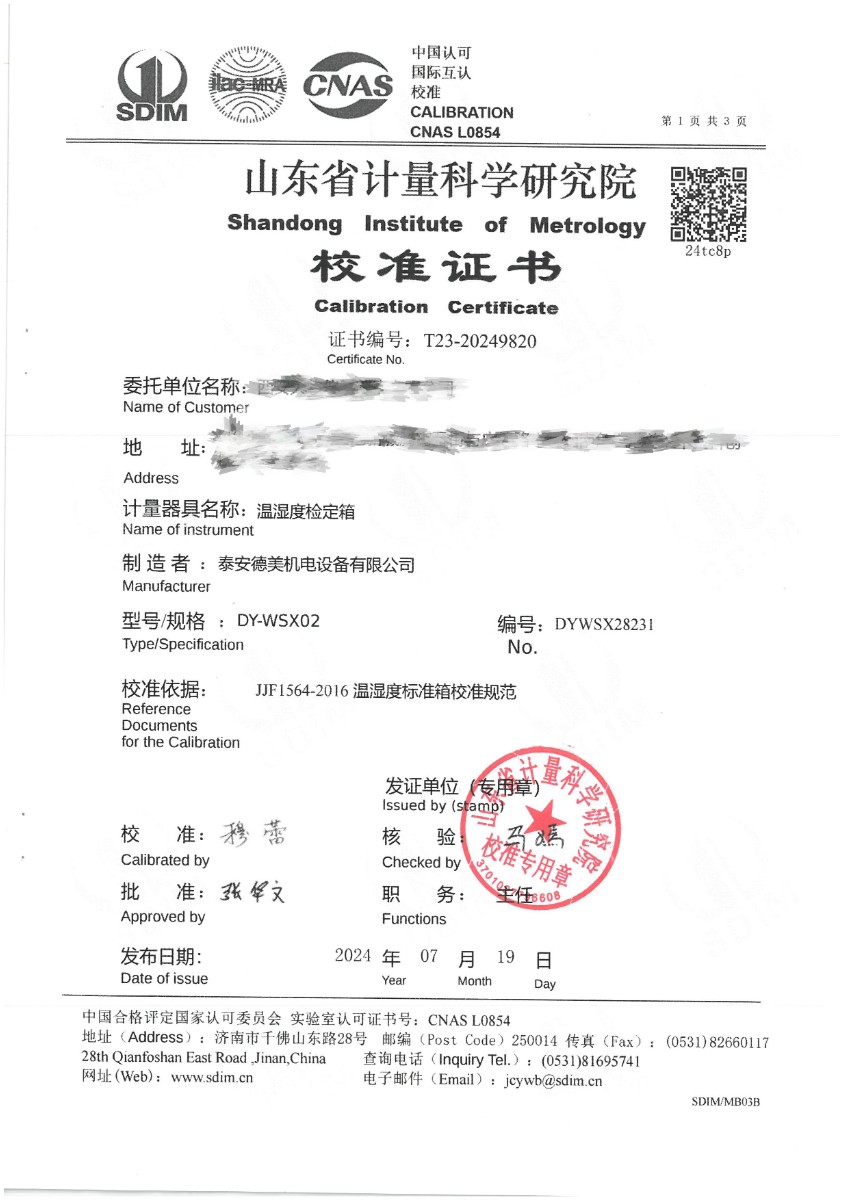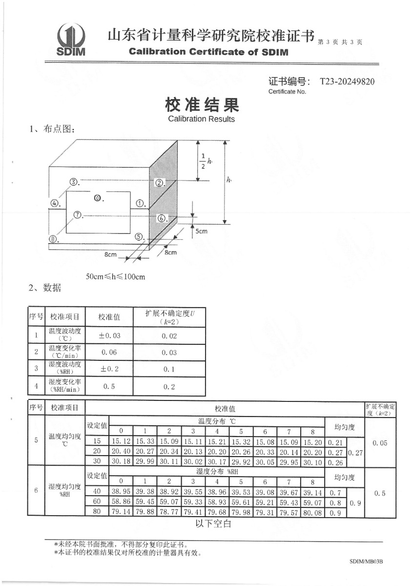 溫濕度檢定箱(-20~70℃)校準(zhǔn)證書(shū) 2024-7-20 本文被閱讀 8277 次