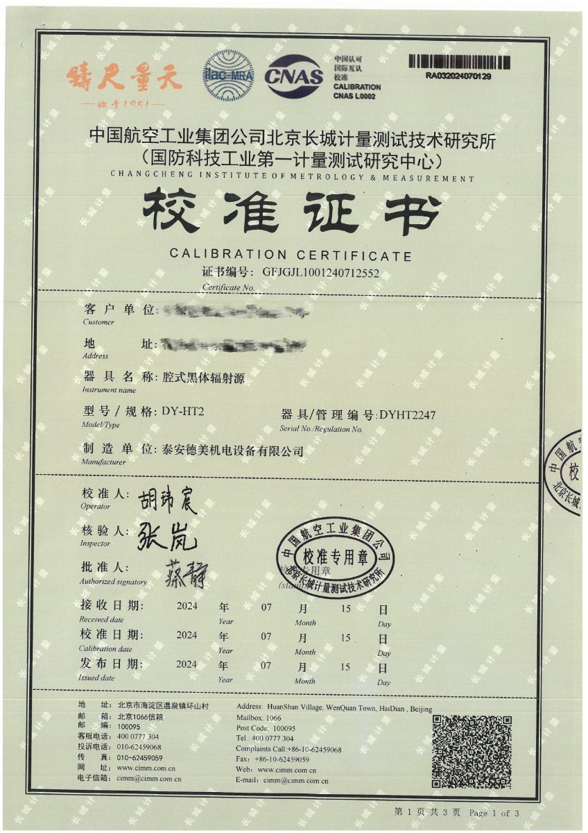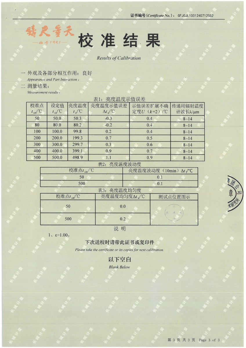 | 上一條:面源黑體爐(室溫+5℃~400℃)校準(zhǔn)證書(shū) | 下一條:DY-HT2M-C高溫面源黑體爐(100mm) |