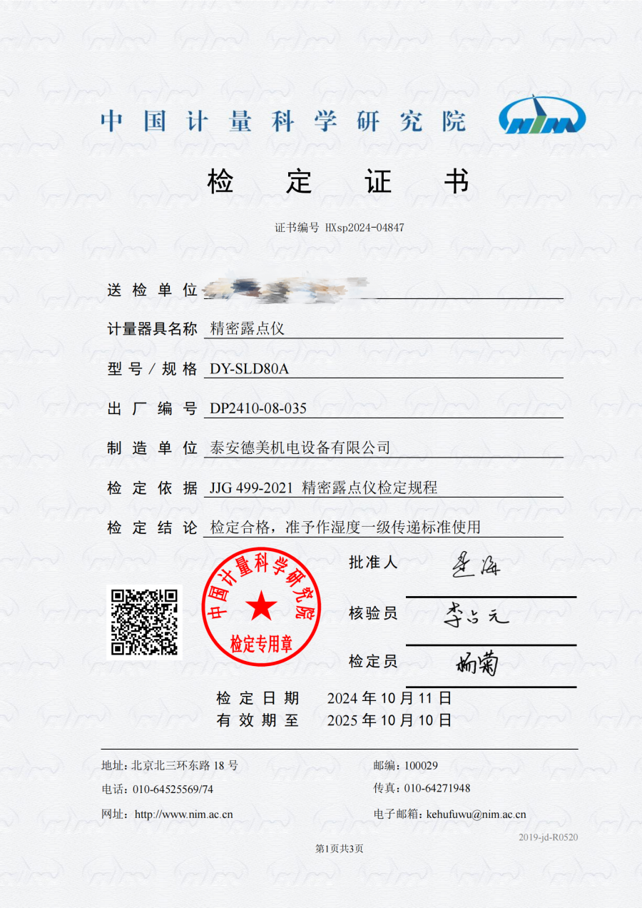 露點儀校檢定證書 2024-10-25 本文被閱讀 7419 次