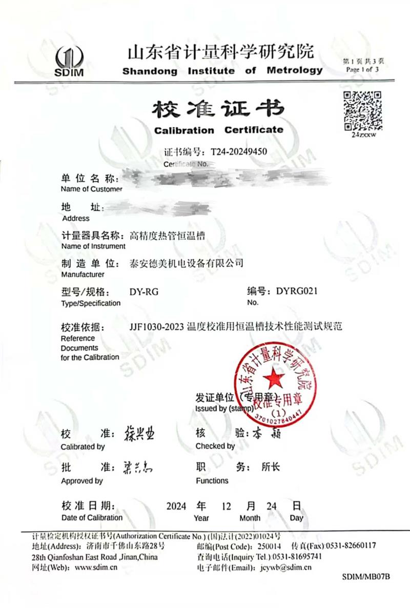 高精度熱管恒溫槽(50~300℃)校準(zhǔn)證書 2025-1-2 本文被閱讀 7227 次