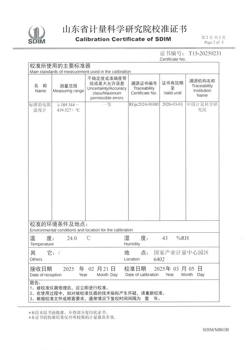高精度數(shù)字溫度計(jì)校準(zhǔn)證書