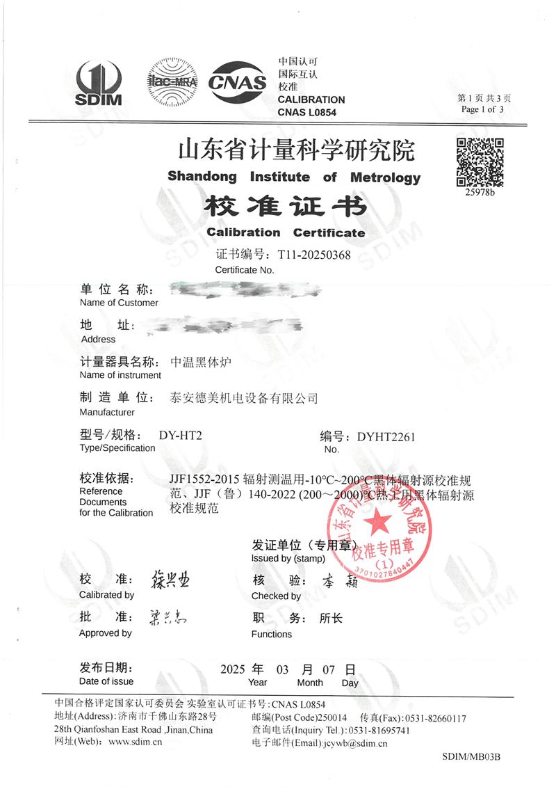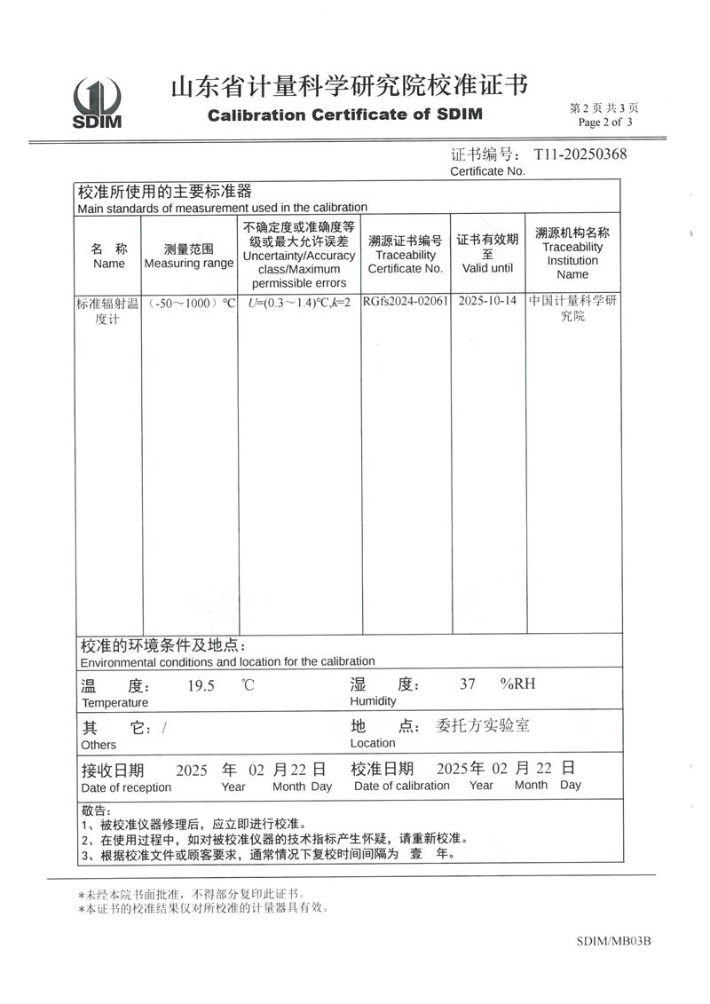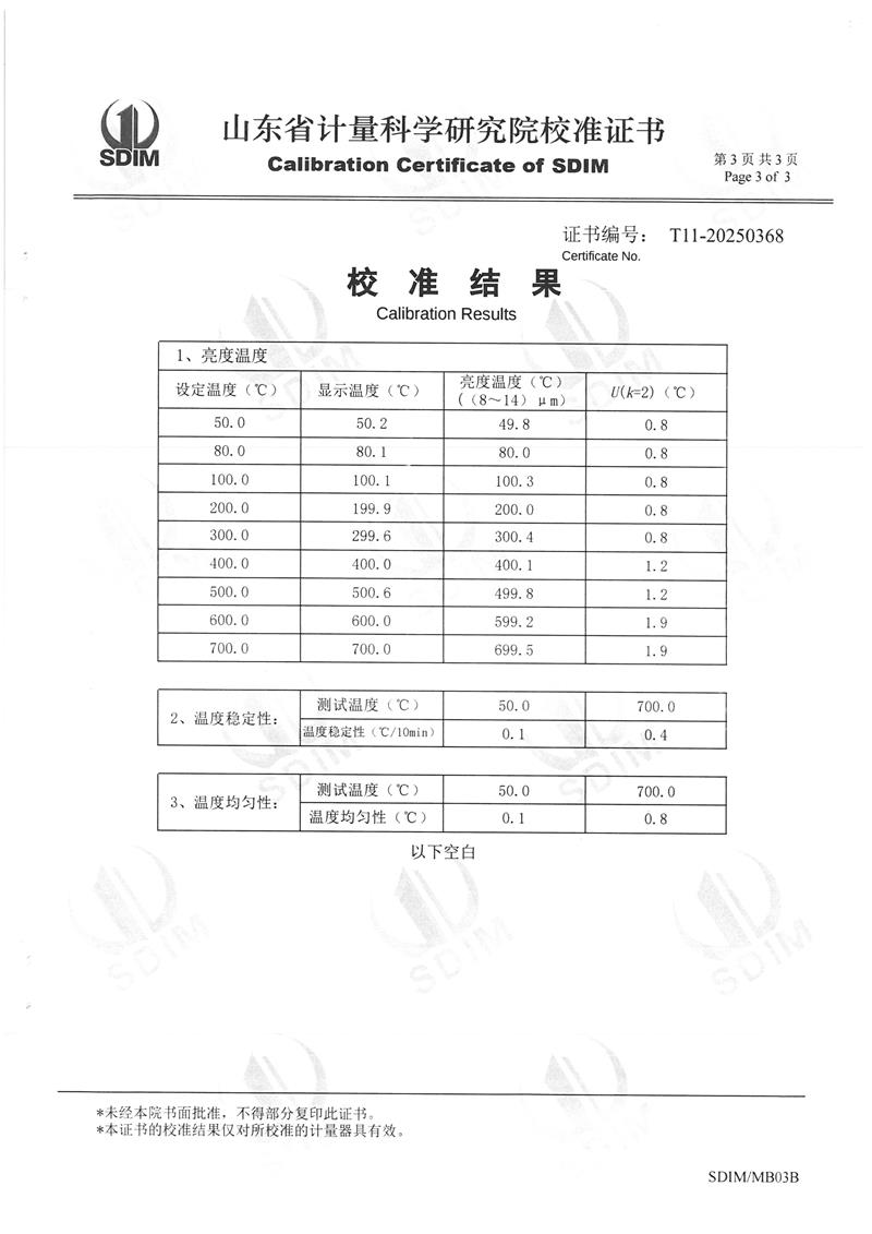中溫黑體爐(50~700℃)校準證書 2025-3-12 本文被閱讀 5605 次