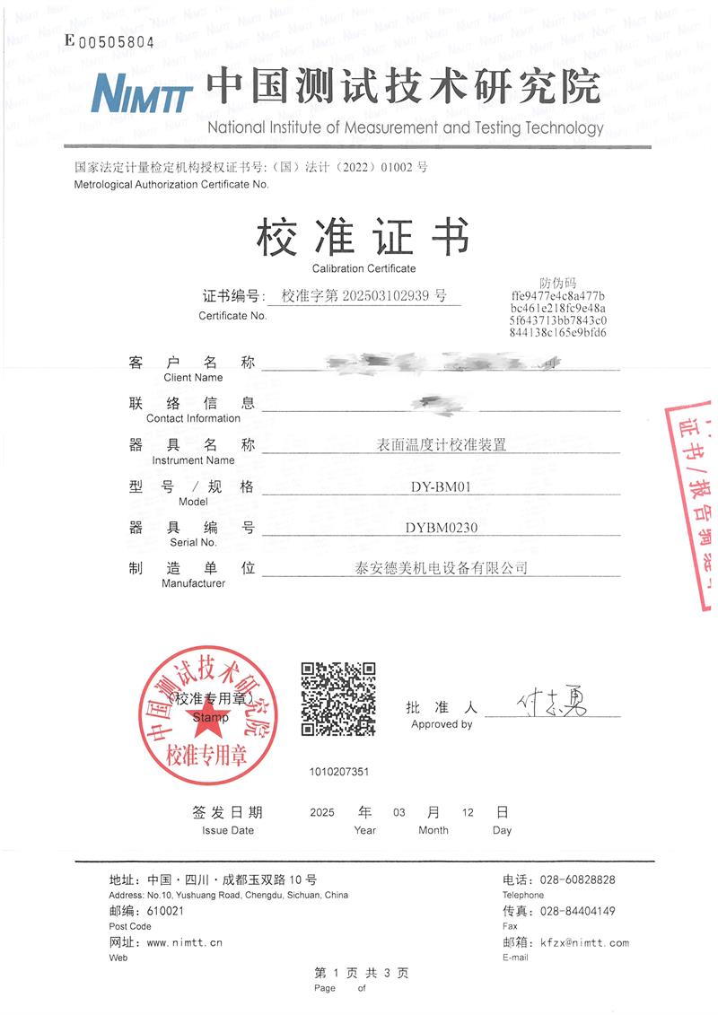表面溫度計(jì)校準(zhǔn)裝置(室溫+5~400℃)校準(zhǔn)證書 2025-3-14 本文被閱讀 4326 次