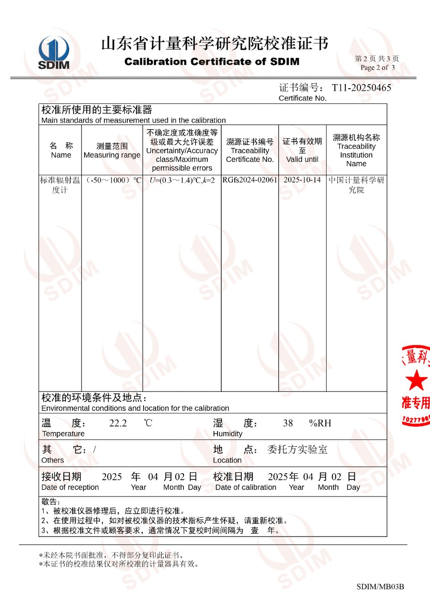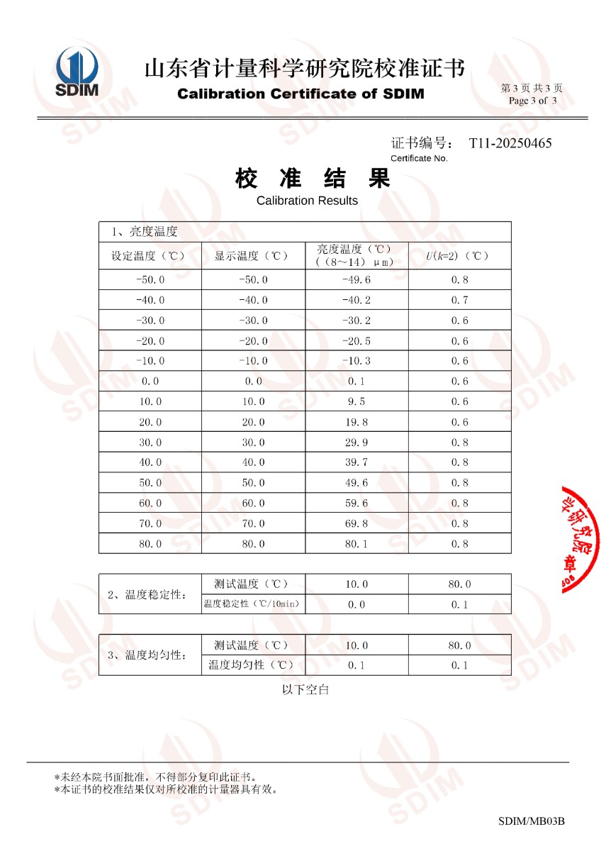 低溫浴式面源黑體爐(-50-80℃)校準(zhǔn)證書 2025-4-9 本文被閱讀 4395 次